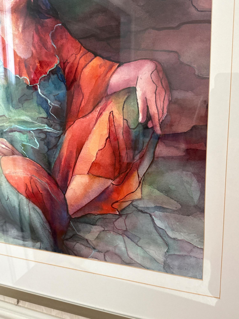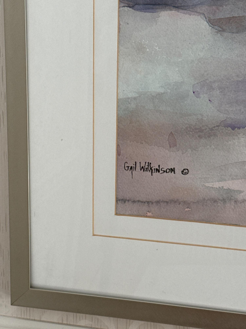 Elegant watercolor artwork by Gail Wilkinson, depicting a seated woman in soft, expressive brushwork. Framed and signed—ideal for gallery walls or personal collections. Condition: Good – framed Medium: Watercolor Artist: Gail Wilkinson Category: Fine Art36" W x 31.5 T Framed dimensions