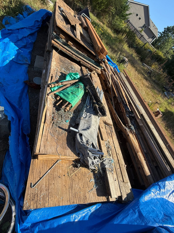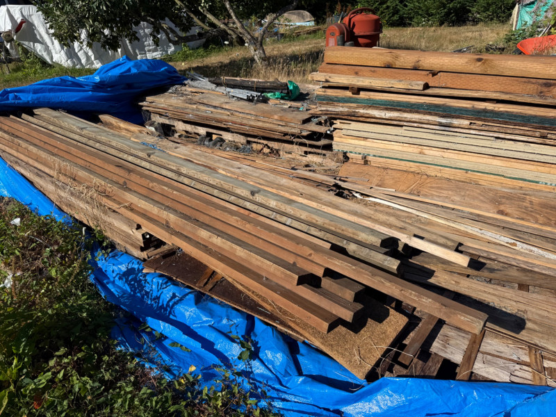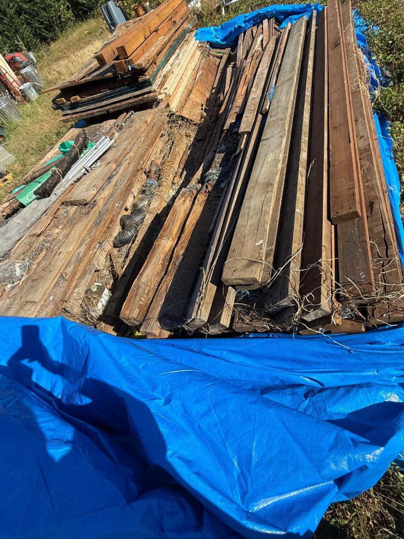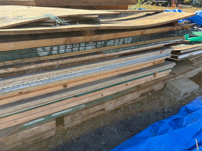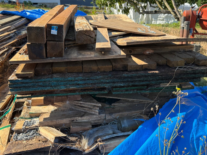 See pictures for details and condition. Pile has been covered in tarp prior to photos. This is a very large pile of lumber and wood. Variety of treated boards, trim, plywood and OSB. Dimensions vary from 12ft at the longest and approximately 36in at the widest. Multiple layers of 2x4, 4x4, 2x6x12 and more. SOLD AS-IS Alternate pick-up time to be coordinated with Heidi at 253-381-8717. Very limited parking. MUST BRING SUPPORT AND EQUIPMENT TO LOAD. SEVERAL VERY LONG BOARDS. Per bidding contract-Staff are not able to load, lift, push, haul or carry any items