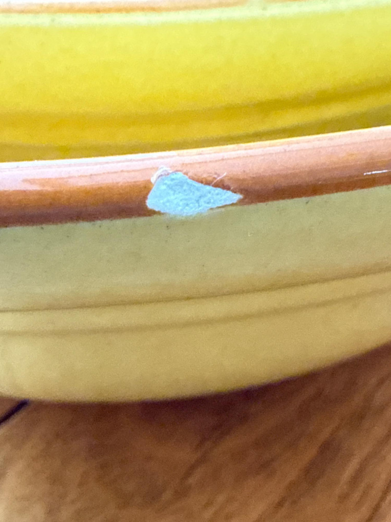 Well-preserved vintage condition. One chip on a bowl. Glaze shows light wear and patina consistent with age and use.