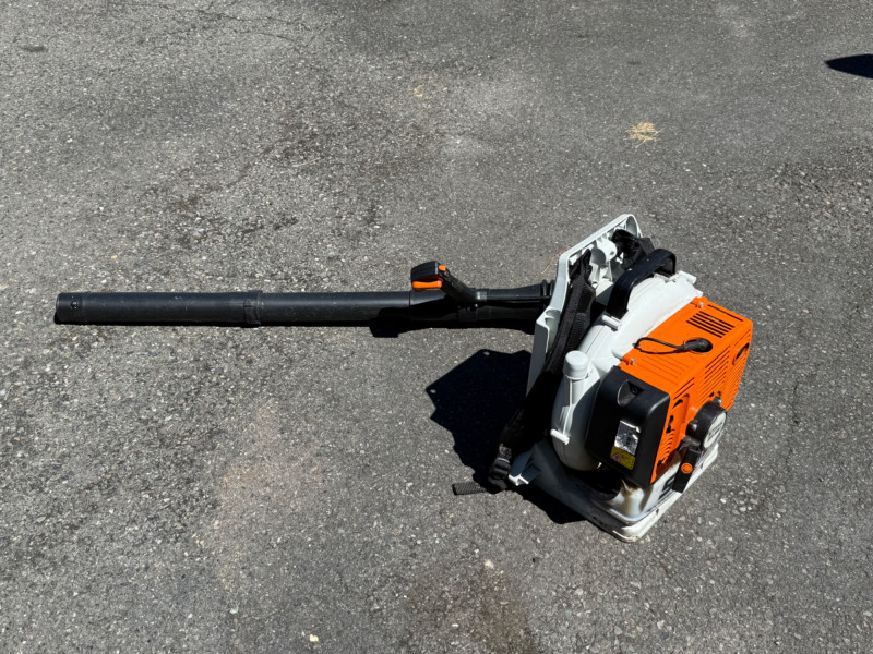 Make & Model: Manufacturer: Stihl Model: BR 380 Features & Components: Backpack-style design for ergonomic support and reduced operator fatigue High-powered gas engine for efficient leaf and debris clearing Durable plastic housing with integrated shoulder straps and padded backrest Throttle control handle with variable speed settings Air intake system designed for optimal airflow and cooling Fuel tank with secure cap and visible fill line Flexible blower tube with adjustable nozzle for directional control Condition: Appears to be in good used condition with typical signs of wear consistent with outdoor use No visible cracks or damage to housing or straps Functionality not fully tested due to-Lack of fuel Minor scuffs and surface residue from prior use All components present and securely attached