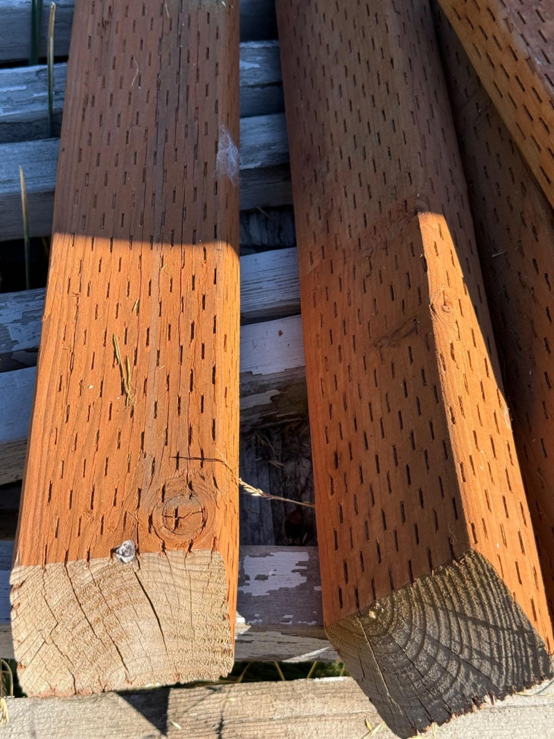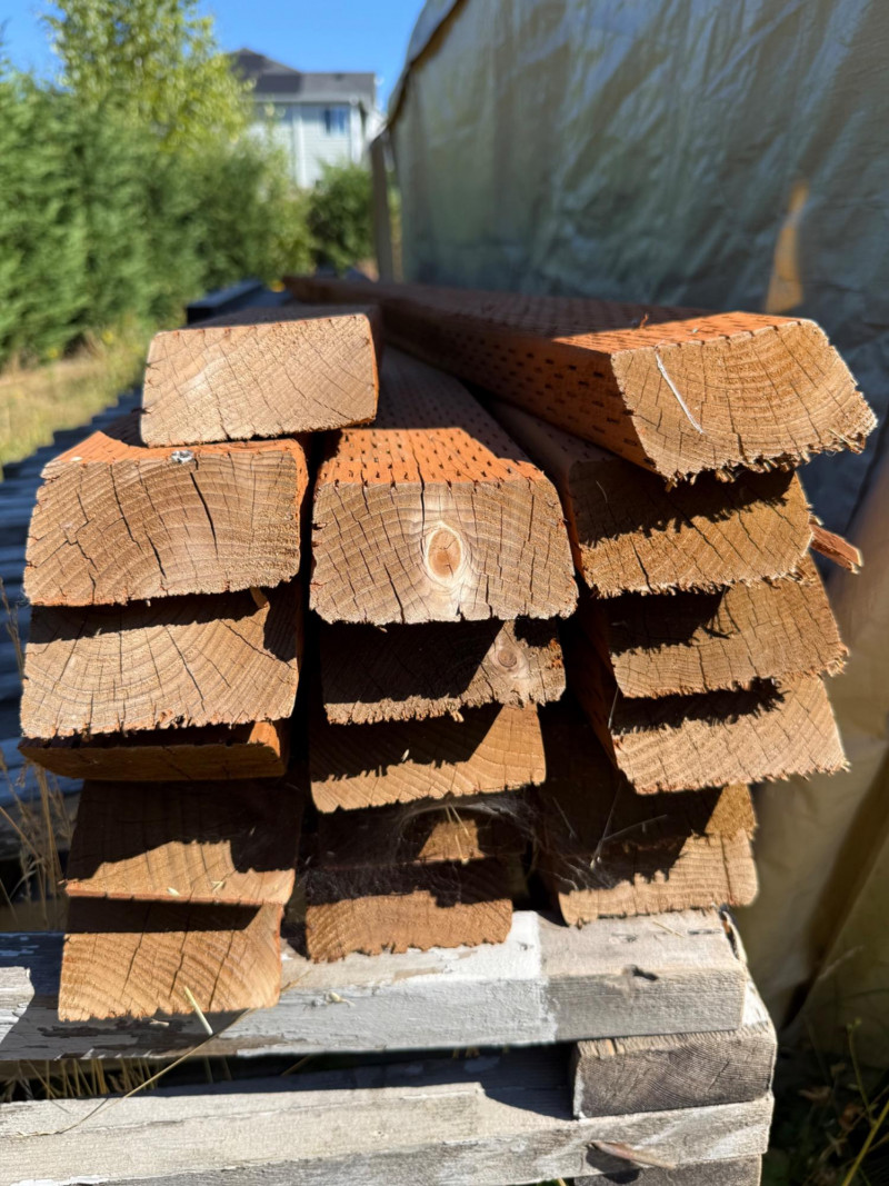 A bulk lot of sixteen treated lumber boards, each measuring 2 inches by 4 inches by 8 feet. Ideal for outdoor construction, fencing, framing, or general-purpose building projects. Quantity: 16 boards Dimensions (each): 2" × 4" × 96" (8 feet) Material: Pressure-treated wood Category: Building Materials Condition: sold as-is