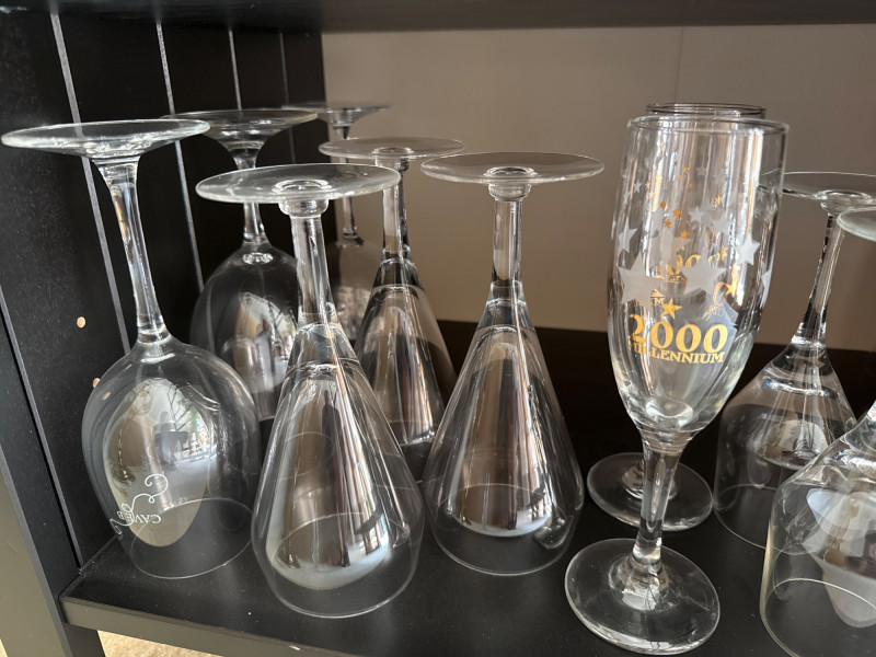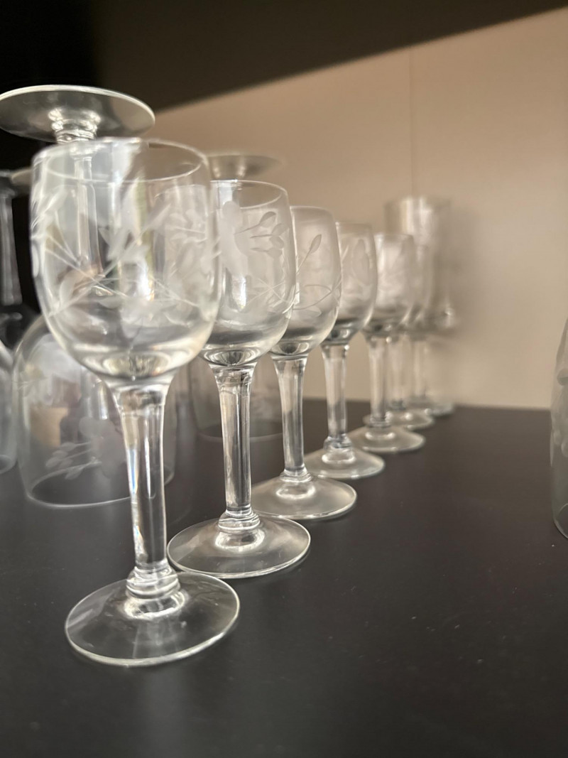 A mixed lot of assorted glass stemware, ideal for hosting, collecting, or enhancing your barware display. This grouping may include wine glasses, champagne flutes, or goblets in various styles and sizes. Perfect for those who appreciate vintage charm or need a versatile set for gatherings. Quantity: Not specified; assorted pieces Material: Glass