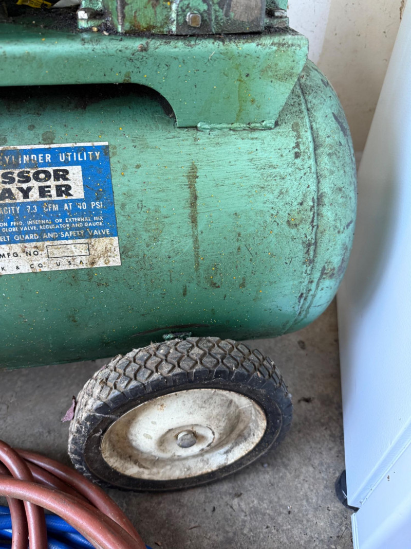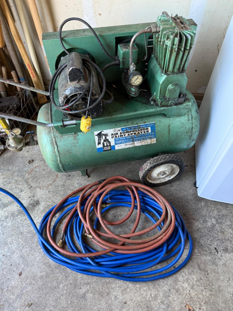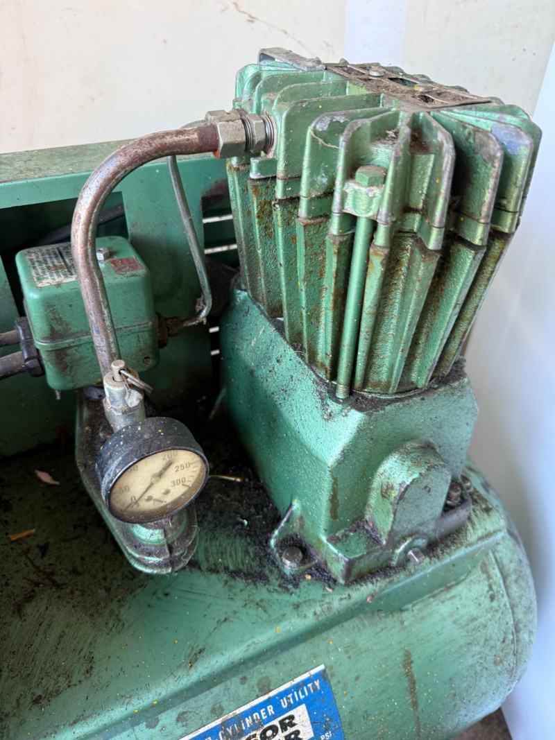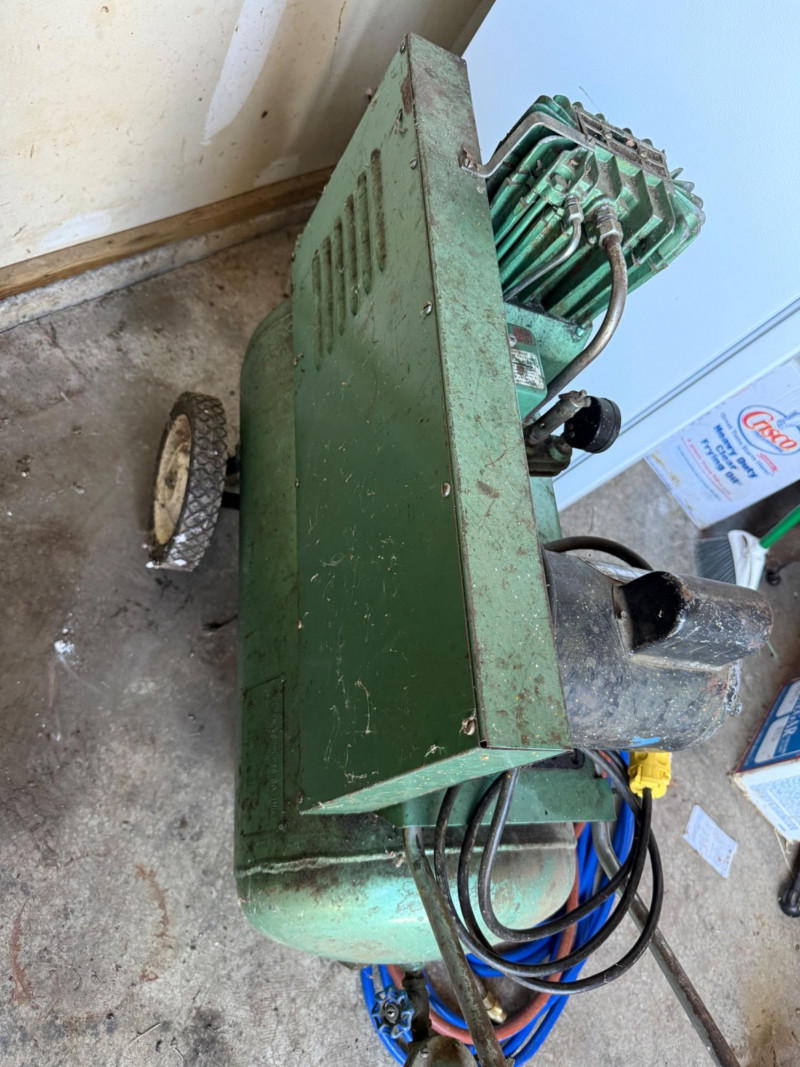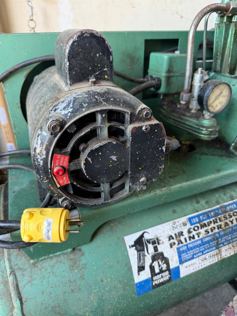 A reliable Sears air compressor, ideal for inflating, powering pneumatic tools, or general garage use. This unit offers classic utility and durable construction, suitable for hobbyists or DIYers. Category: Tools/Industrial Brand: Sears Function: Air compression for tools, tires, and more *Note: Powered up. Heavy, must bring help to load. Per bidding contract-Staff cannot help load, lift, carry, haul or push items.
