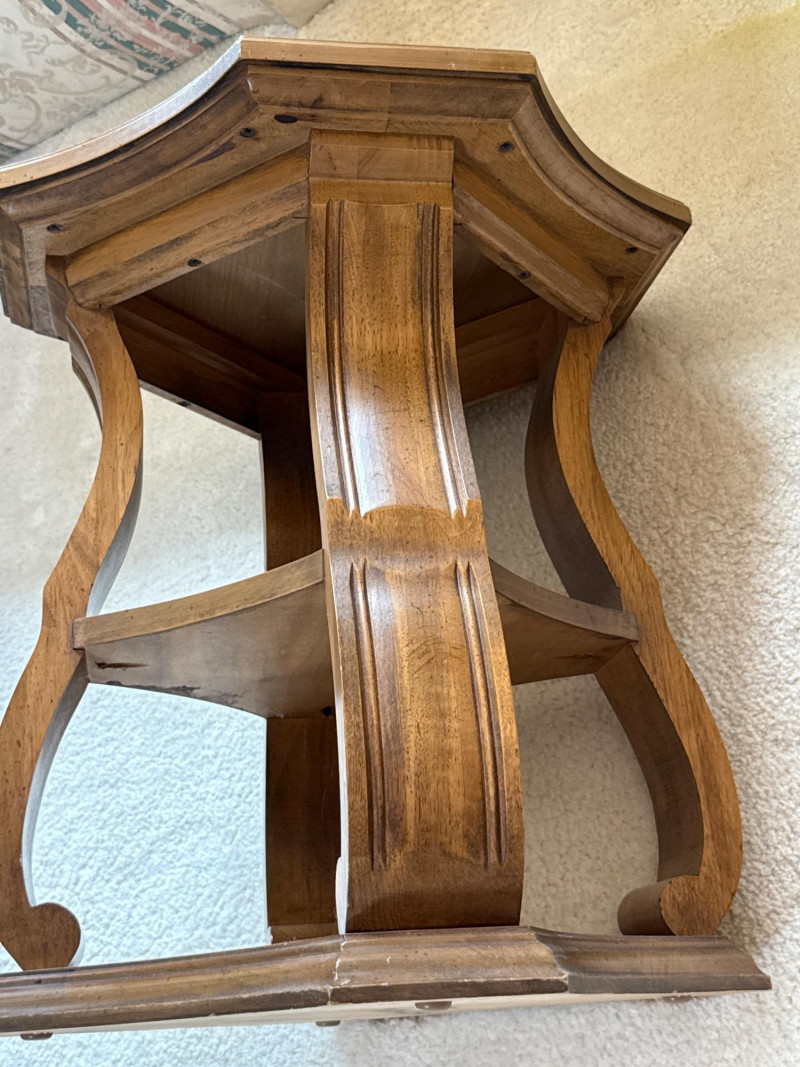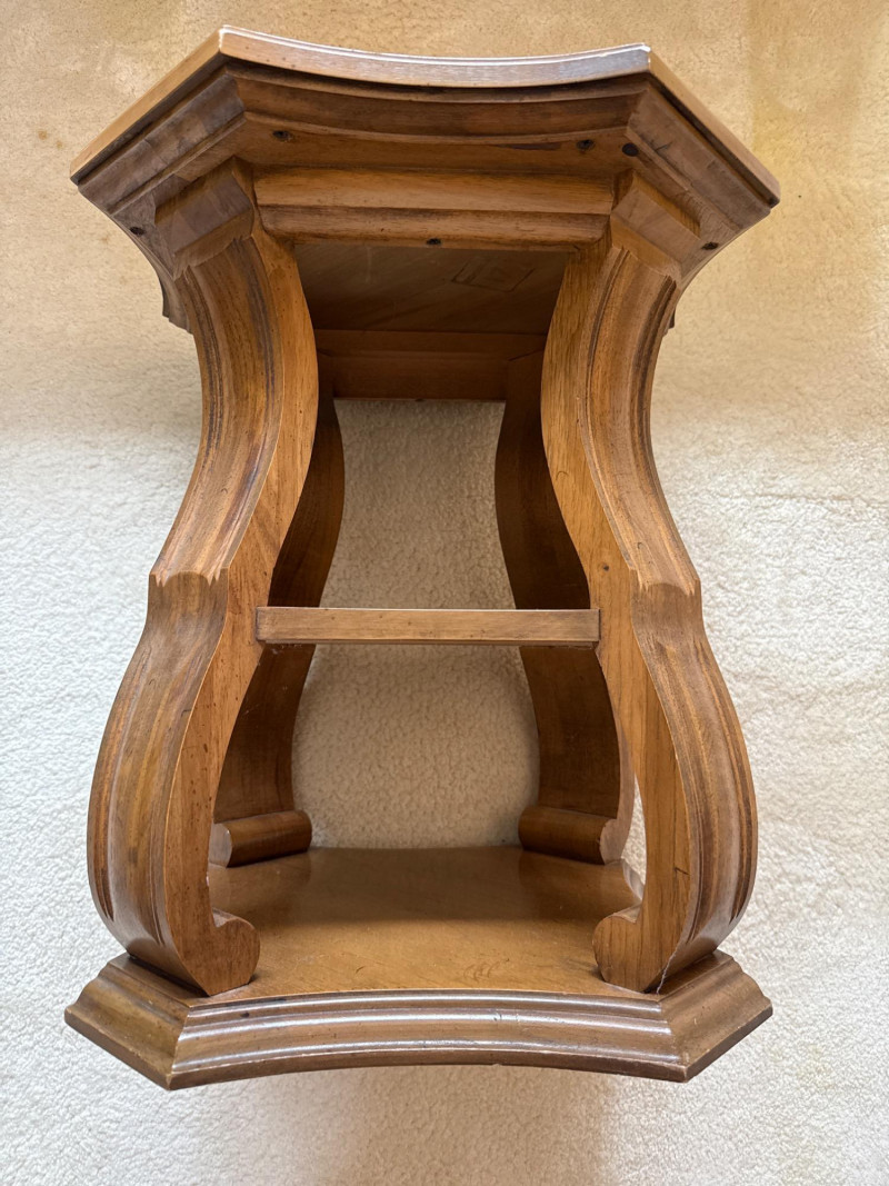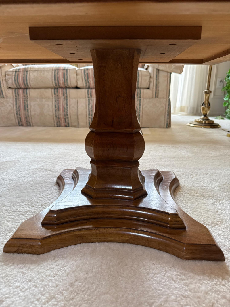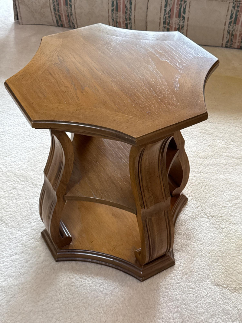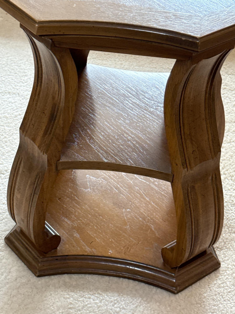 A classic pairing from Thomasville, this vintage wood coffee table and matching side table showcase the brand’s hallmark craftsmanship and timeless appeal. The set features warm-toned wood with a rich finish, gently tapered legs, and subtle decorative accents that evoke mid-century elegance. Ideal for traditional or transitional interiors, these pieces offer both style and function. Style: