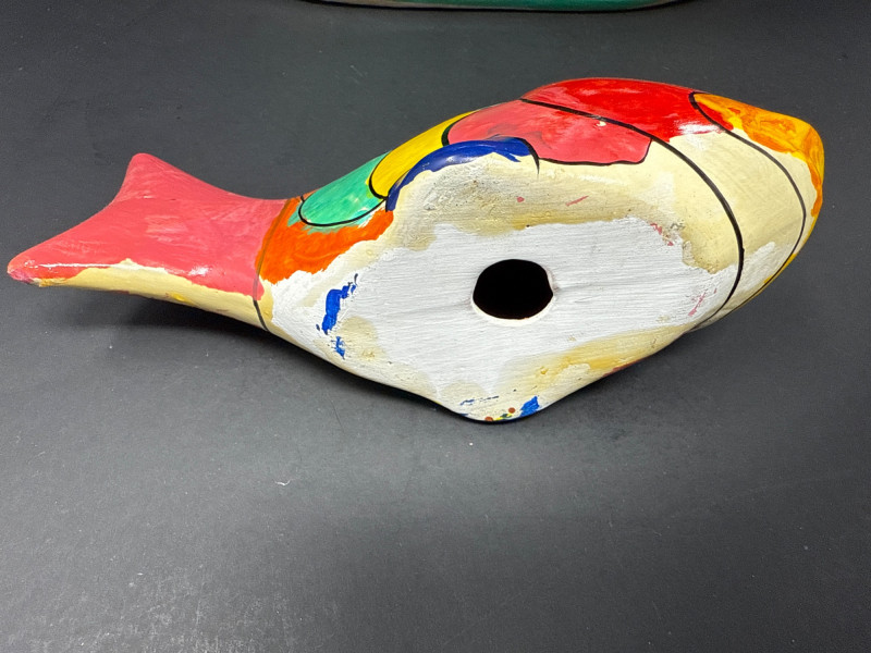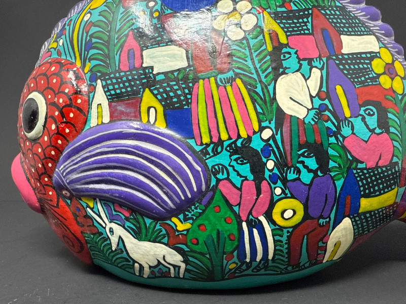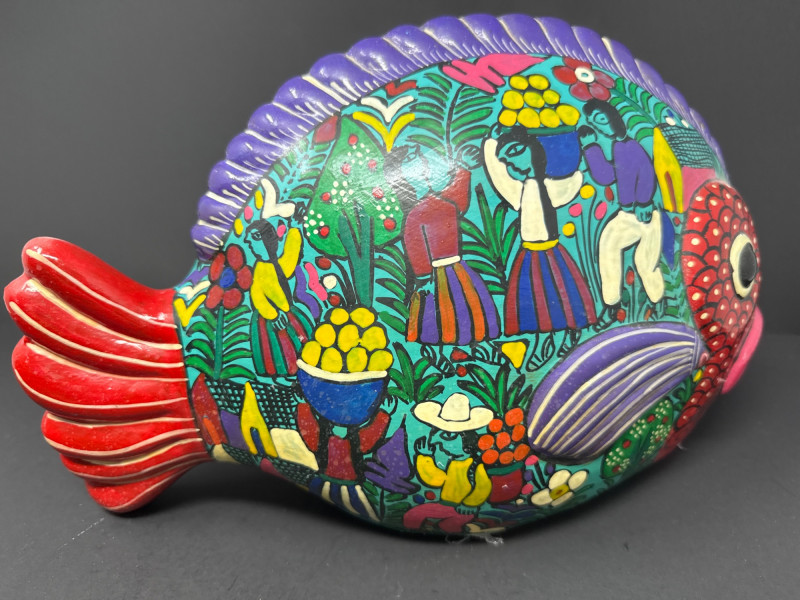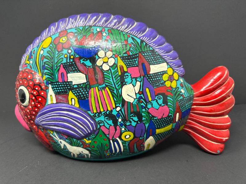 Lot # 130 - 3 Hand-Painted Mexican Folk Art Pottery Fish – Talavera Style