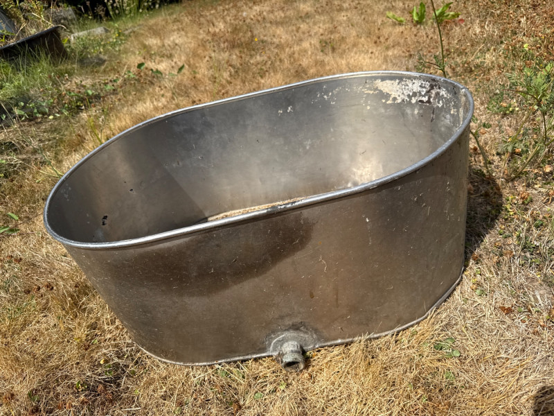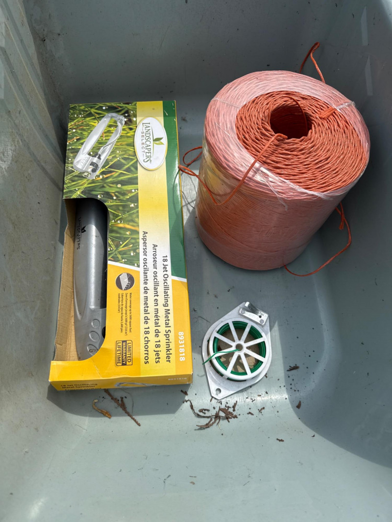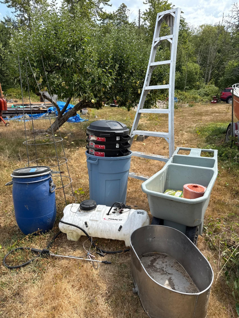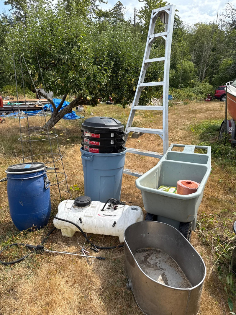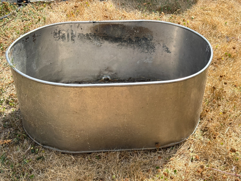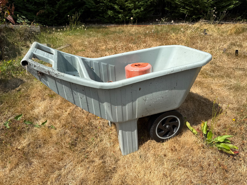 Stainless steel tub dimensions 27.5 inches long, 19 inches wide the spout, 12 inches tall. 15 gallon sprayer dimensions 34 inches long, 15.5 inches wide, 15 inches tall. Ames easy roller lawn cart dimensions 42 inches long, 21 inches wide, 31.5 inches tall. Heavy duty steel trellis 72 inches tall. 24 inches wide.. This versatile outdoor lot includes a mix of functional farm and garden tools: FIMCO 15 Gallon Electric Sprayer