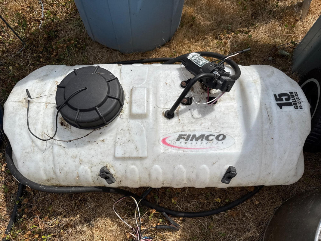 Lot # 132 - FIMCO 15 Gallon Electric Sprayer, Assorted Farm and Garden Equipment