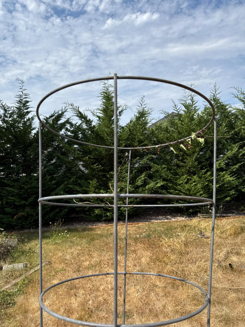 Sturdy vertical support for climbing plants or decorative garden use. Items appear to be in used but functional condition, with no specific damage noted. Some wear consistent with outdoor use may be expected (e.g., surface scuffs, minor rust on metal components). No mention of missing parts or mechanical issues.Contents: