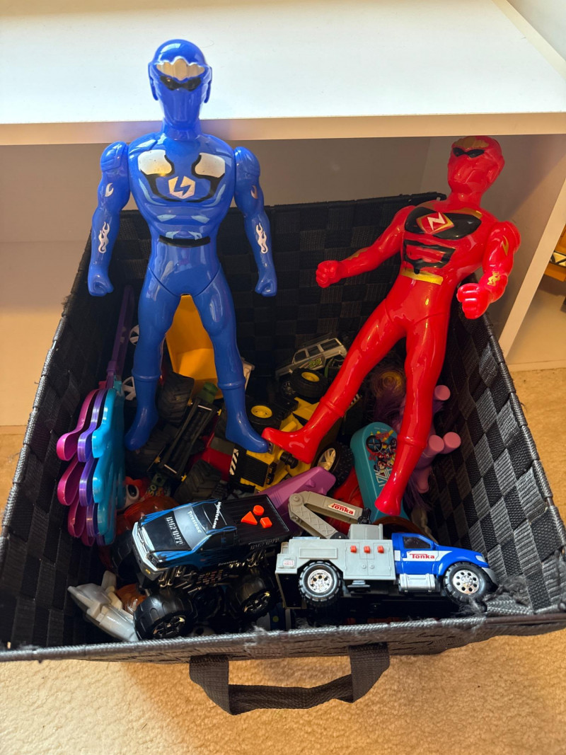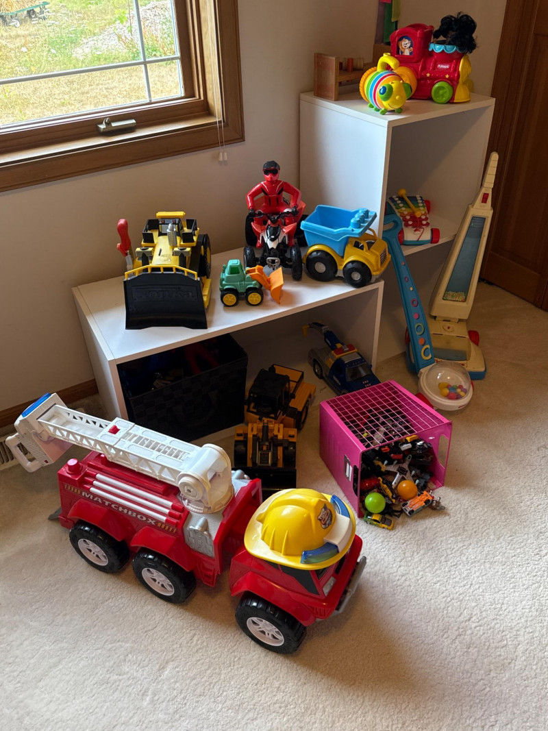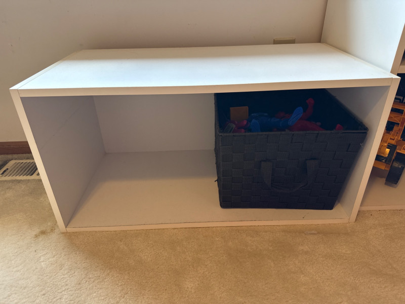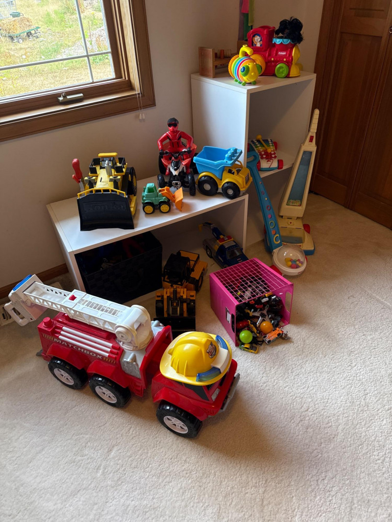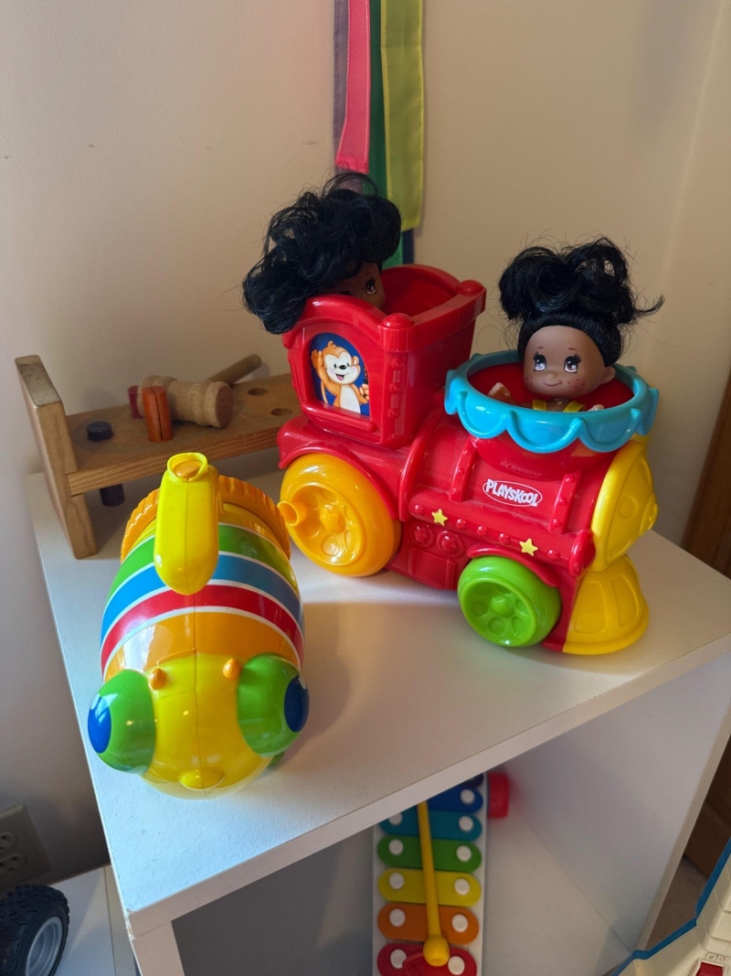 A cheerful assortment of vintage and modern toys, ideal for collectors or charitable gifting. Includes: Fisher-Priceclassics such as: Pull-along chatter telephone Popping Vacuum Train Xylophone Toys for Tots-style items: Tall Shelf Length: 15 inches Width: 15 inches Height: 30 inches Horizontal Shelf Overall condition is good. Most items show light wear consistent with age and use. No broken or heavily damaged items observed.Contents & Brands: