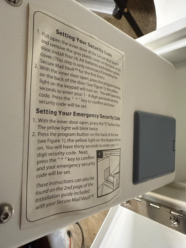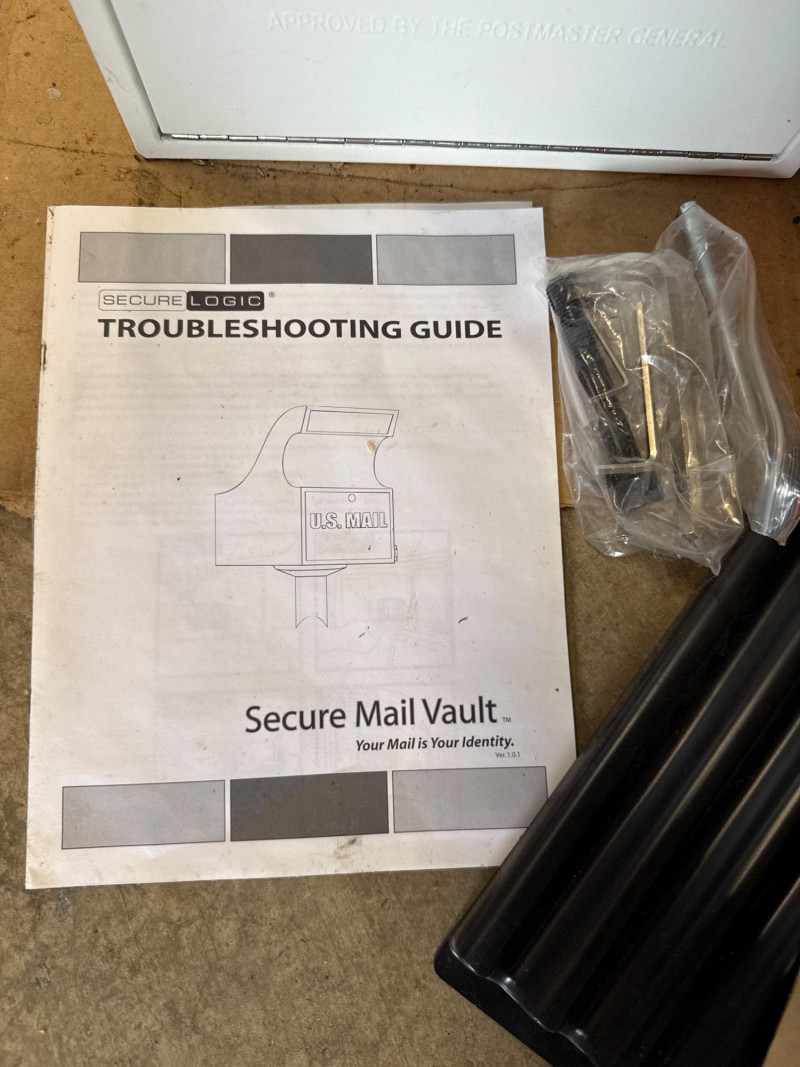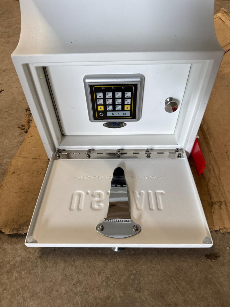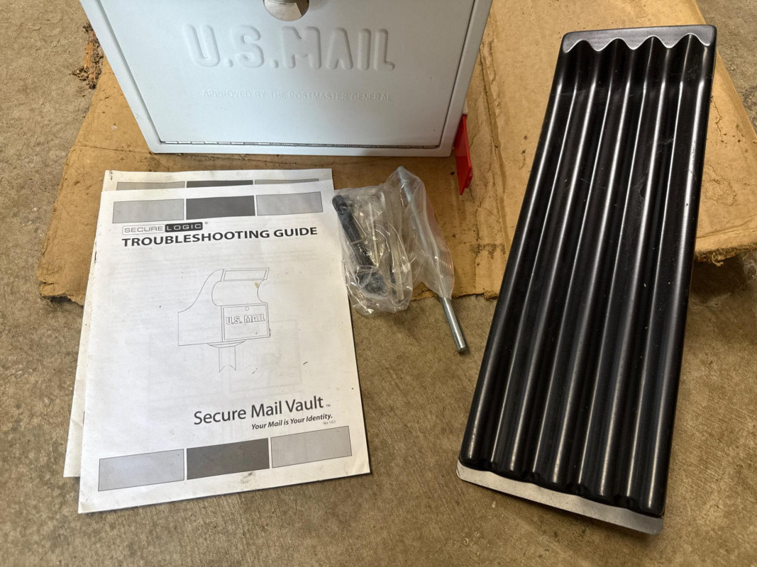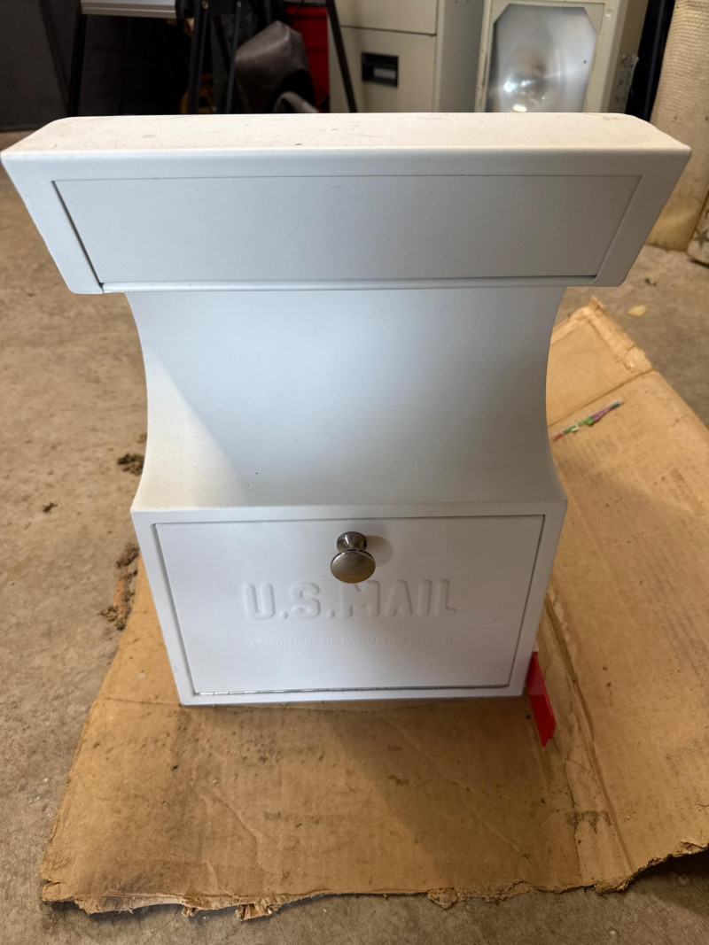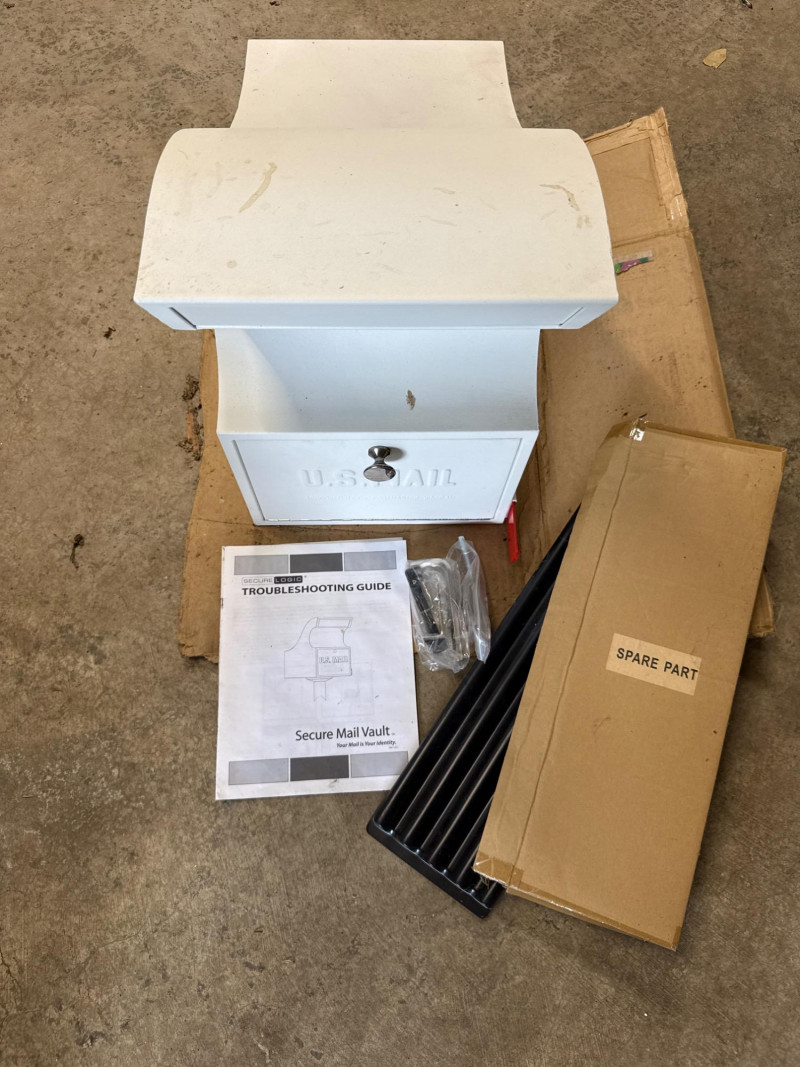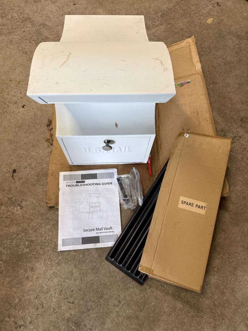 Style: Contemporary utility with a clean, modern aesthetic. The white finish suggests a neutral, versatile look suitable for various home exteriors. One white mailbox unit- Heavy and solidly built Presumably includes mounting hardware - Not inventoried Locking mechanism-key pad and key with detailed instructions for use Length: 21 inches Width: 12 inches Height: 18.5 inchesContents & Components