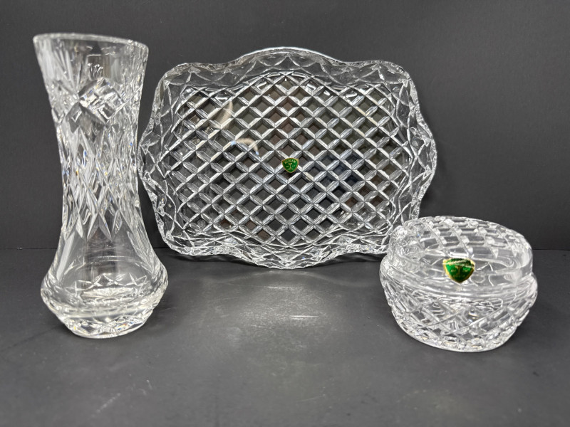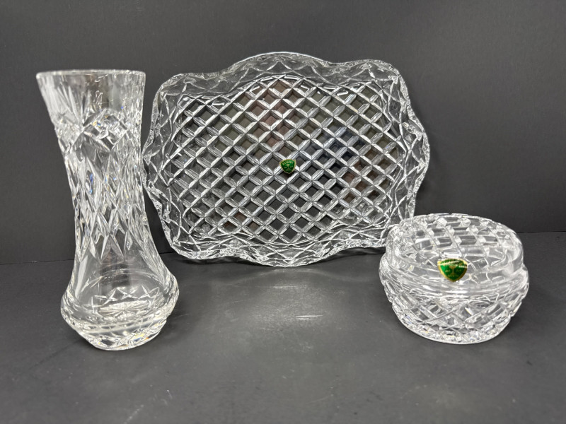 Lot # 155 - Kuzak Crystal Tray, Lidded Bowl and Vase