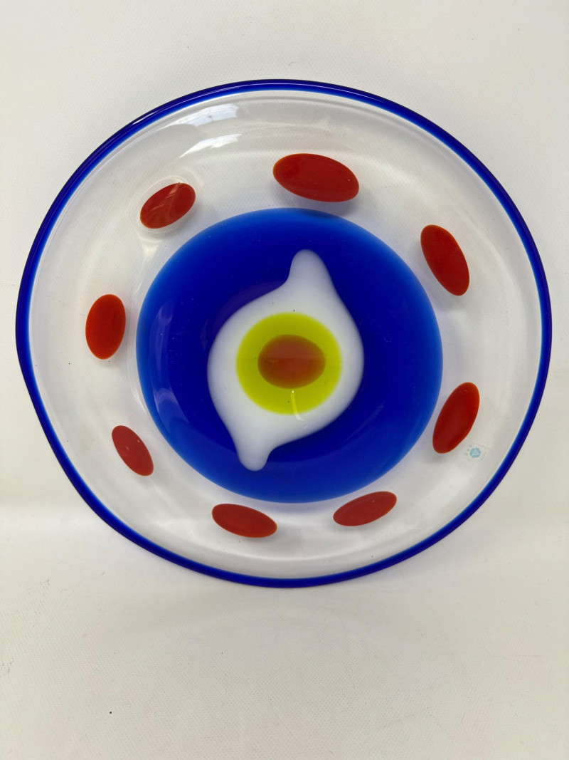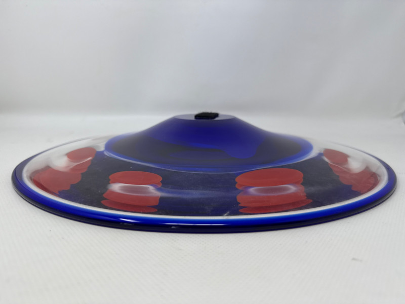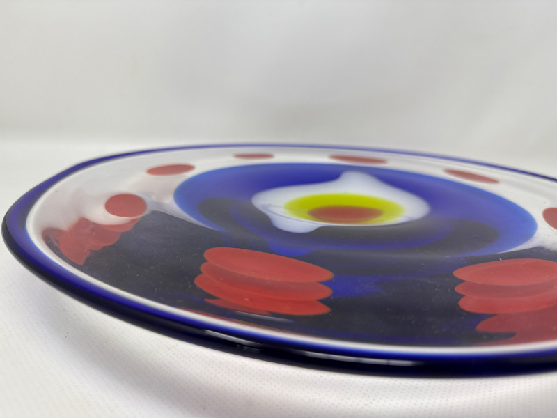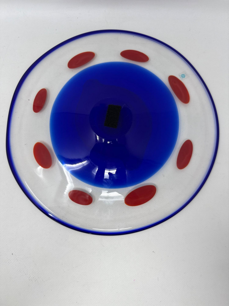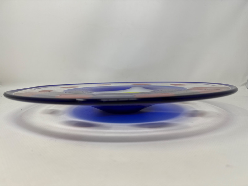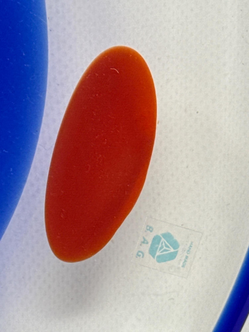 A sleek and contemporary art glass bowl by B.A.G. This low-profile piece showcases clean lines and minimalist design, ideal for modern interiors or curated glass collections. Category: Collectibles/Artifacts Dimensions: 14.2" L × [Width TBD] × 2.2" H Material: Art glass Maker: B.A.G Condition: Excellent. Very heavy. Has a small Velcro patch on bottom