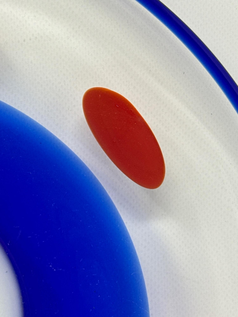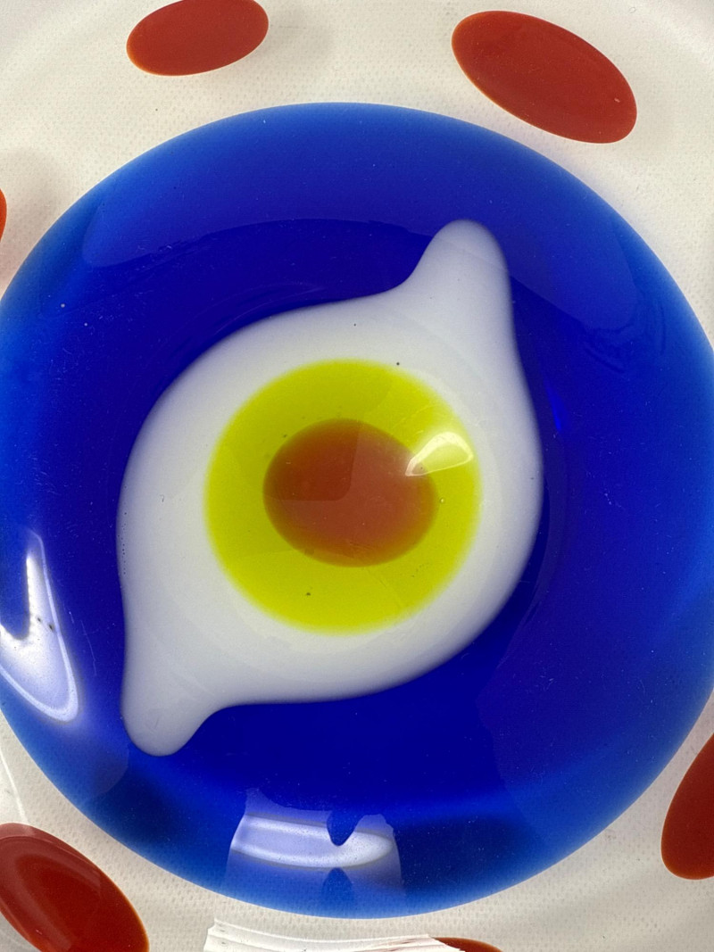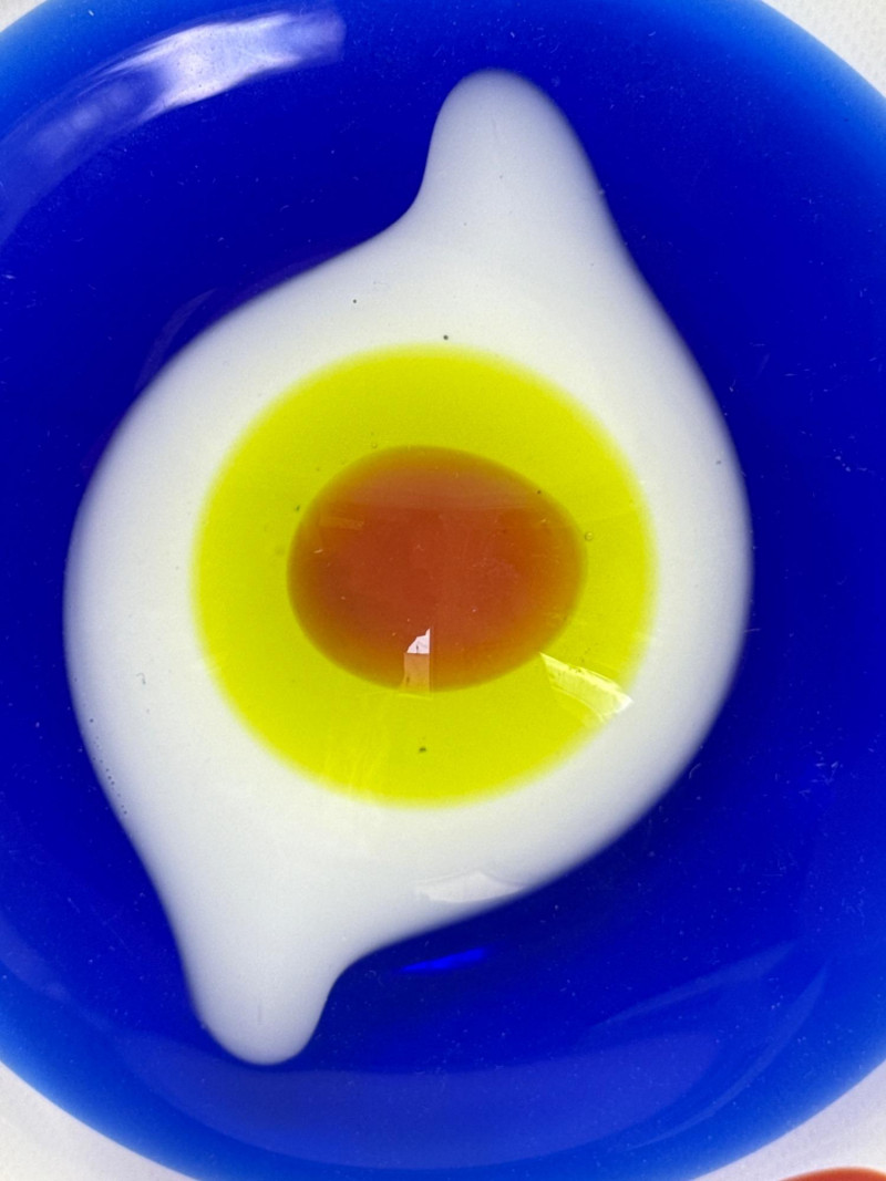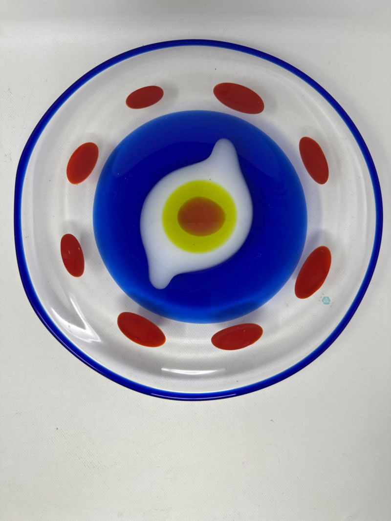 A sleek and contemporary art glass bowl by B.A.G. This low-profile piece showcases clean lines and minimalist design, ideal for modern interiors or curated glass collections. Category: Collectibles/Artifacts Dimensions: 14.2" L × [Width TBD] × 2.2" H Material: Art glass Maker: B.A.G Condition: Excellent. Very heavy. Has a small Velcro patch on bottom