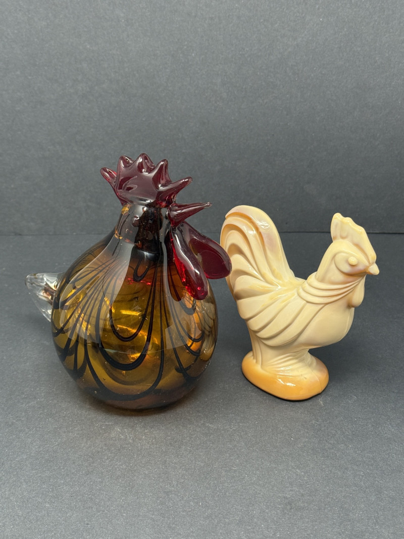 Lot # 61 - Murano Art Glass & Fenton Ceramic Rooster Figurines