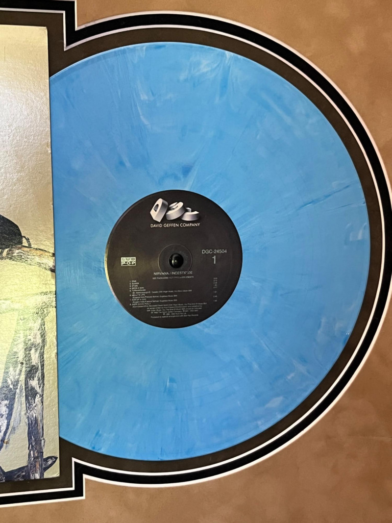 Rare collectible from one of the largest Seattle Grunge influences. Framed and signed sleeve by original Nirvana members Kurt Cobain (signed Kurdt), Krist Novoselic, and Dave Grohl. Album is a custom blue clear vinyl printing. The glass was broken and removed from the frame, and there is some light wear on the album sleeve. incesticide is a compilation album released in December 1992, debuting at #51 in the Billboard 200 and selling 500,000 copies in two months. In the UK, the album debuted at #17, eventually peaking at #14. Despite a lack of promotion by Geffen Records, Incesicide is considered to be a huge hit and was certified Platinum. Previously unreleased titles Hairspray Queen, Aero Zeppelin, Big Long Now were featured on this album. Additionally, Been A Son, (New Wave) Polly, and Aneurysm were added from a BBC Radio Studio session. Item is sold as is without glass panel or any certification. Item was purchased through goodwill auction years ago.