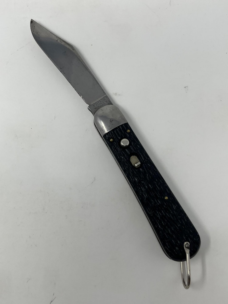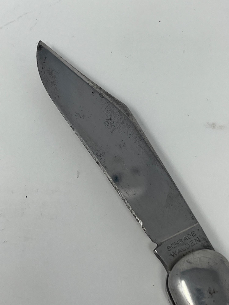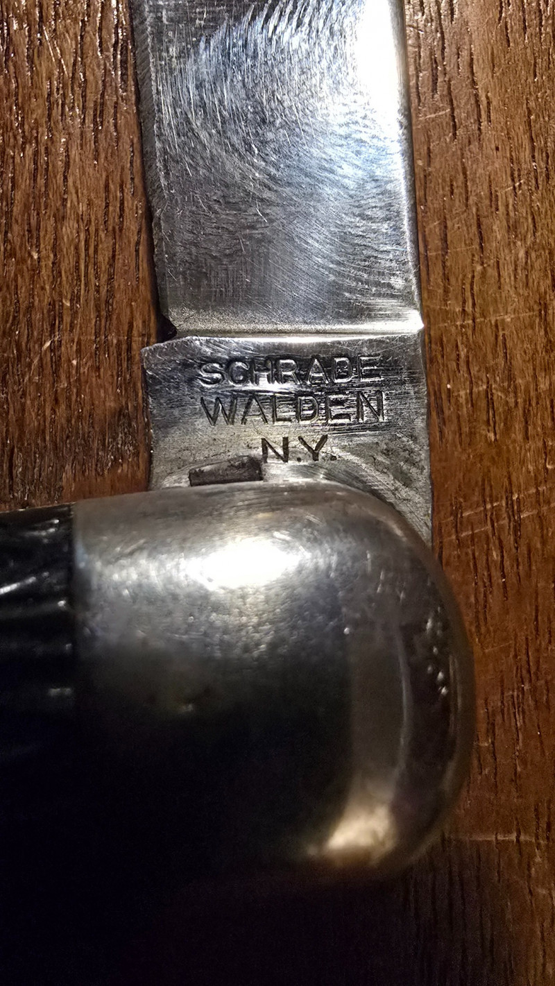 US M2 Paratrooper Knife made by Schrade Walden NY- original, not a reproduction! Blade has had some wear, but in overall great condition for a piece of military history. Estimated Value $600-$1,100. Used by paratroopers to cut themselves free from their parachute if they became tangled when landing, this was a classic piece of WW II equipment. A small zipper pocket was provided in the M42 Jump Jacket at the lapel to carry the M2's since the other pockets were liable to be inaccessible due to parachute harnesses and field gear.