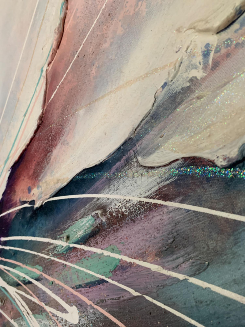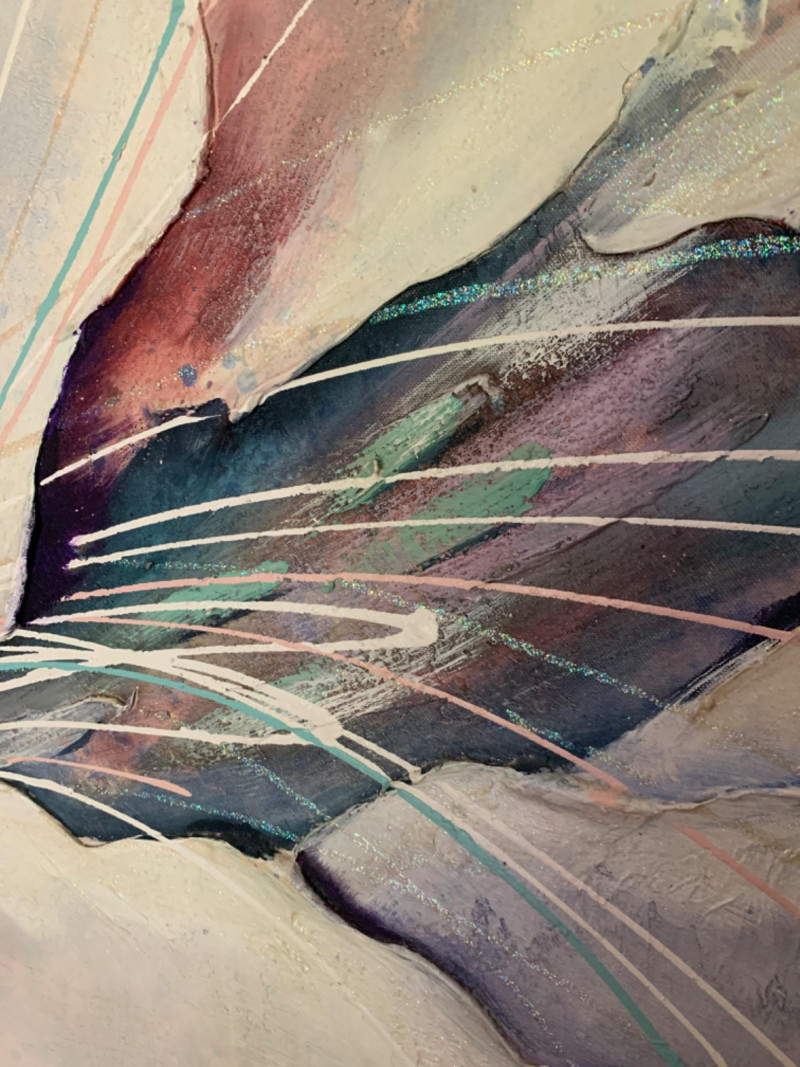 Jeri Ledbetter is known for her abstract paintings that often explore the interplay between nature and industry, drawing inspiration from natural elements and man-made structures, particularly along the Mississippi River. Her work embraces spontaneity and allows the painting to unfold through the process of accumulating and erasing paint and pencil marks.