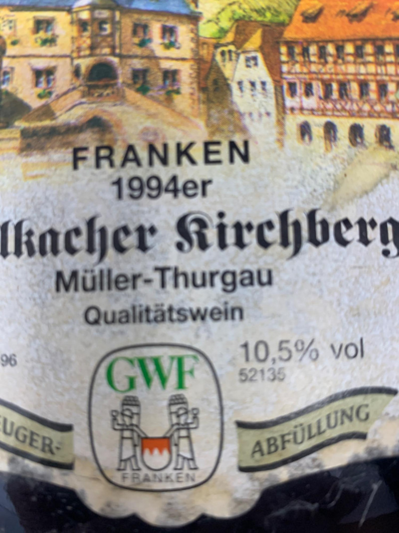 Lot # 12 - 1994 Volkacher Kirchberg Müller-Thurgau wine bottle