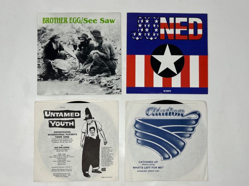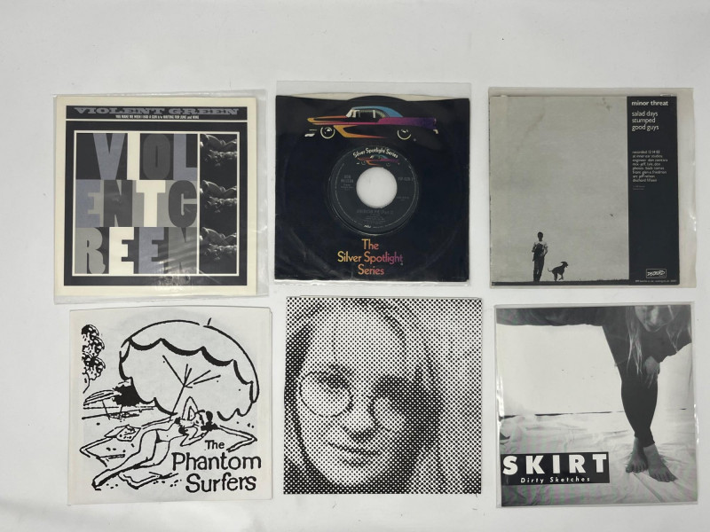 Lot of miscellaneous 7" vinyl records. Exact condition of individual vinyl's will vary, but most are well preserved for their age. Sold as-is. Lot Includes: Violent Green- You Make Me Wish I Had A Gun Don McLean- American Pie (The Silver Spotlight Series) Minor Threat- Salad Days The Phantom Surfers- Bikini Drag The Timothy Cook Singers- Love Ballad to Barbara Dollarhide (Promotional Pressing) Skirt/Laundry- Dirty Sketches/Ivory Tights Brother Egg/See Saw Juned- So White Untamed Youth- Sophisticated International Playboys Theme Song Kristi Kay