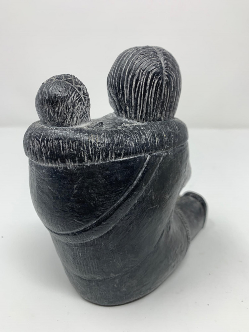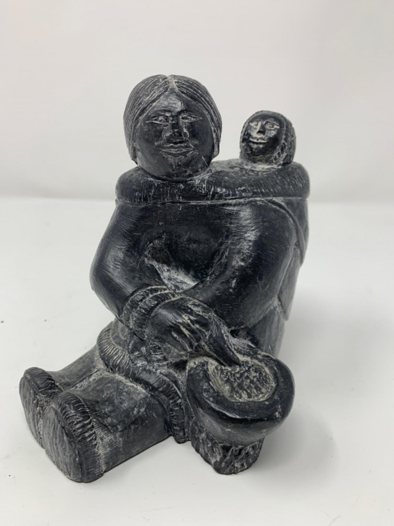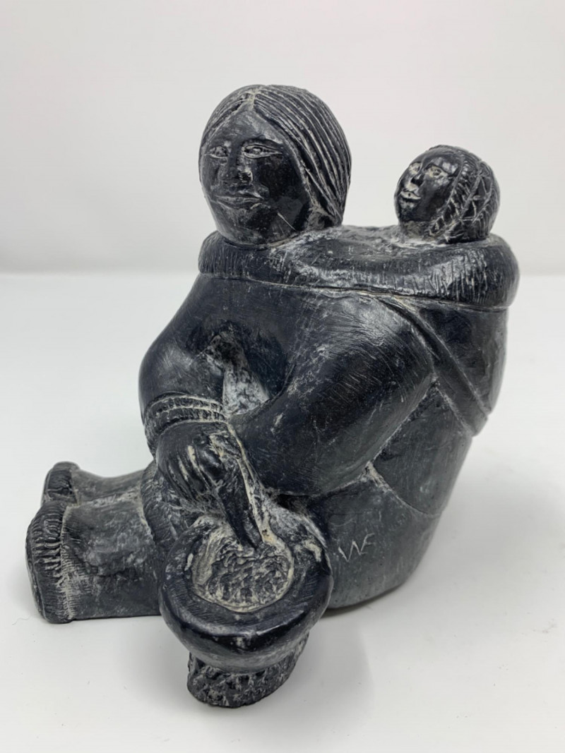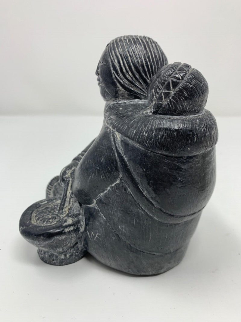 A Wolf Original" (also known as The Wolf Sculptures) depicting an Inuit mother and child. These sculptures are handmade in Canada and represent Canadian Aboriginal culture.