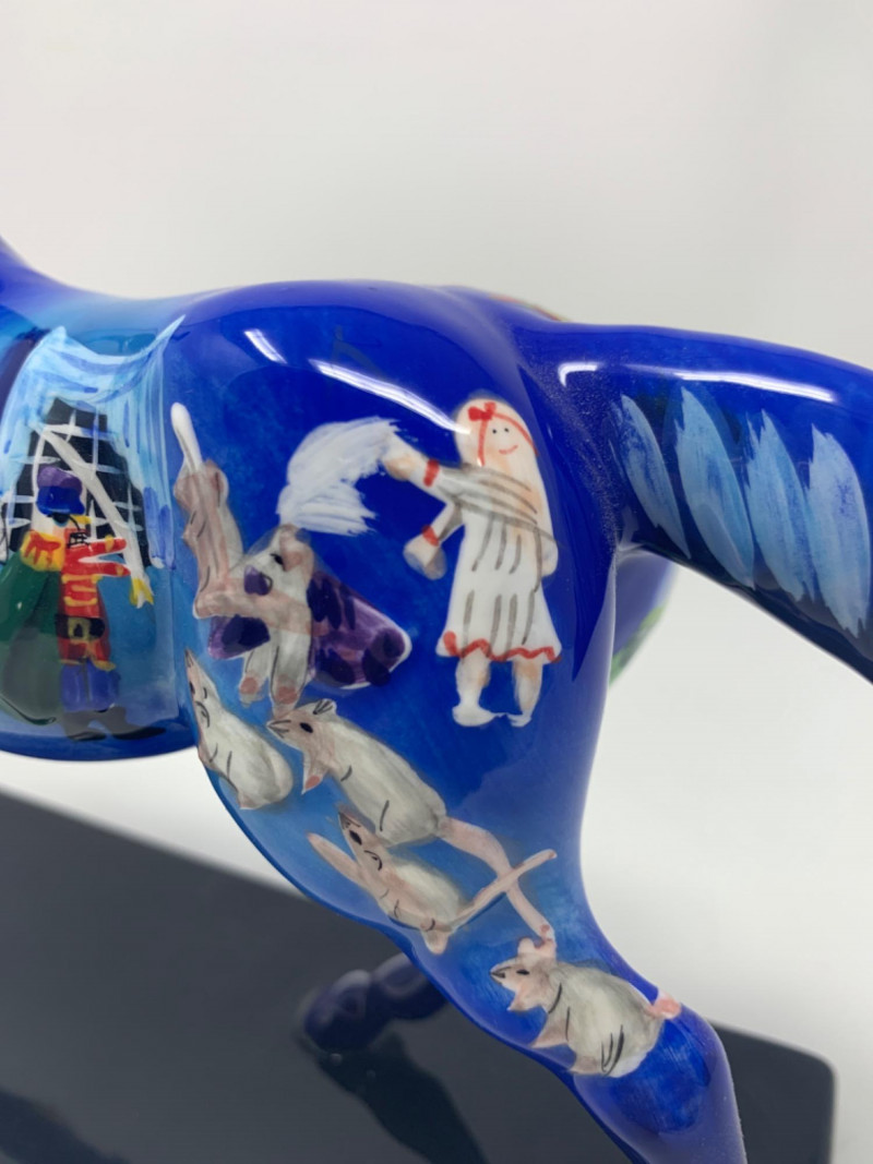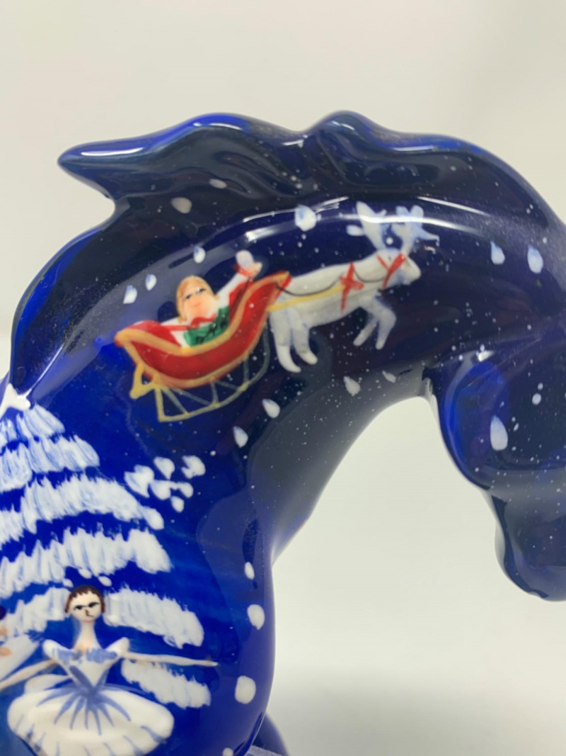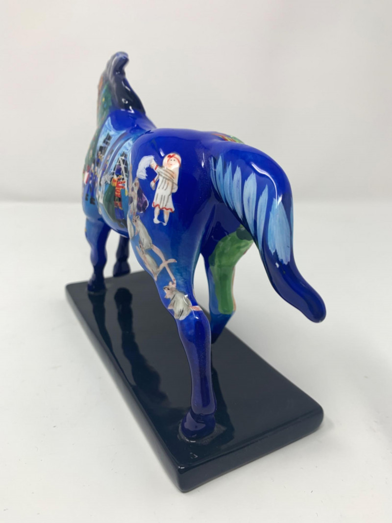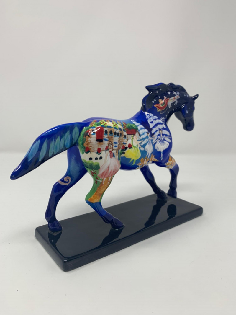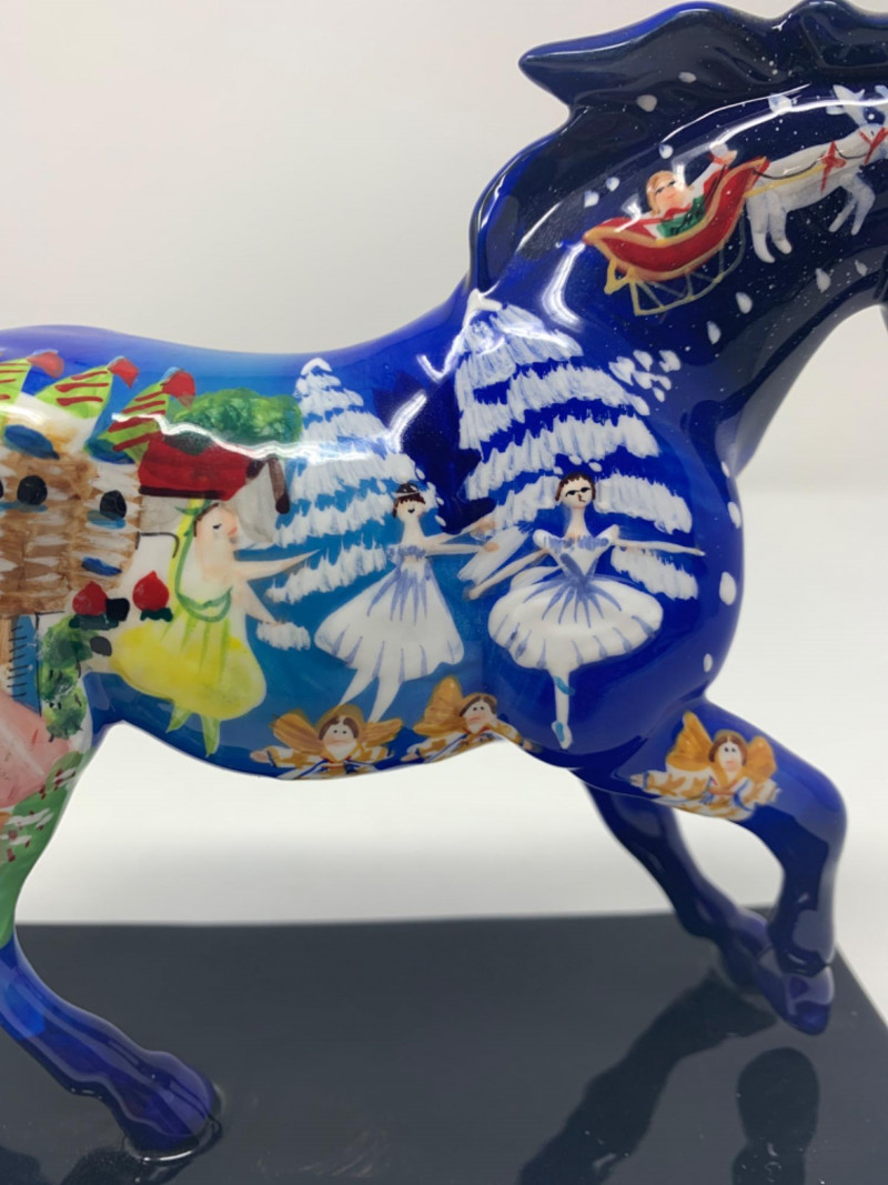 The trail of painted ponies limited edition 2E/1036 item number 12201. Nutcracker Pony by the artist Jamie Hughes. This is a 2004, the trail of painted ponies LLC by Westland. No chips in perfect condition top to bottom all hand painted beautiful. Visually see Clara the main character, the Christmas tree, nutcracker, Grandfather clock and more painted on the pony.