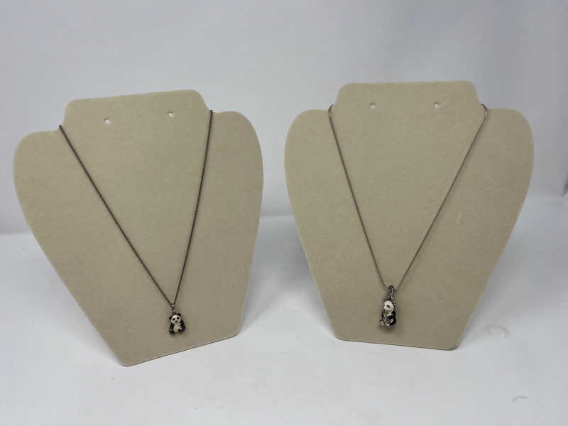 Lot # 101 - Lot of 2 Necklaces: .25 carat TW Black Diamond & Enamel Pandas