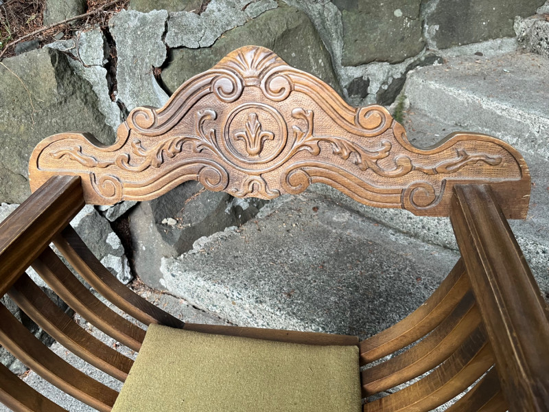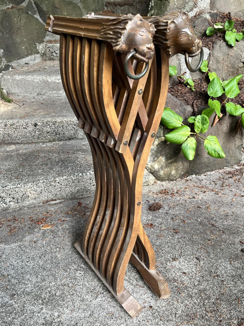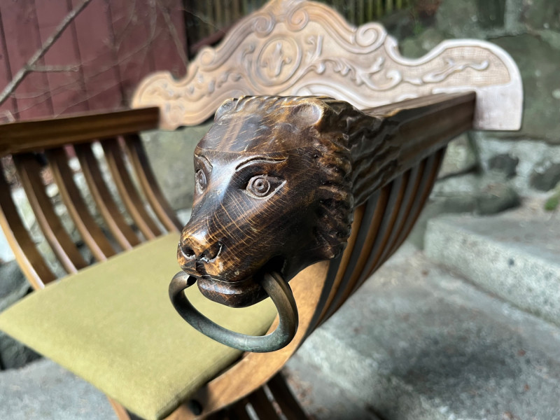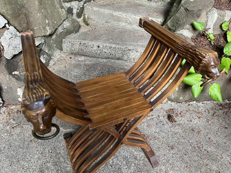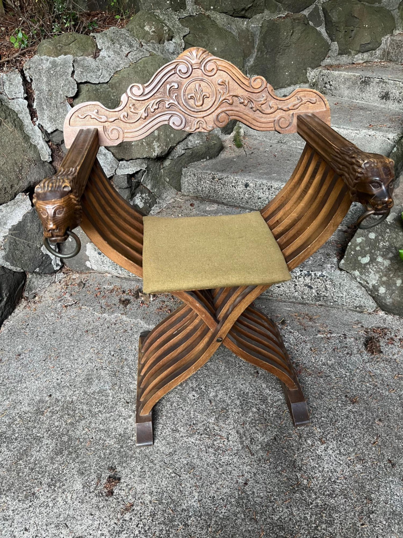 Beautiful Savonarola Style Chair, also known as a "Savonarola Dante Chair". It takes its name from Girolamo Savonarola, an influential Italian Dominican friar and preacher who lived during the 15th century. The chair's design is inspired by the furniture popular during the Renaissance period, particularly in Florence, Italy. Solid wood frame folds easily and stores well, with a simple cushion for added comfort.