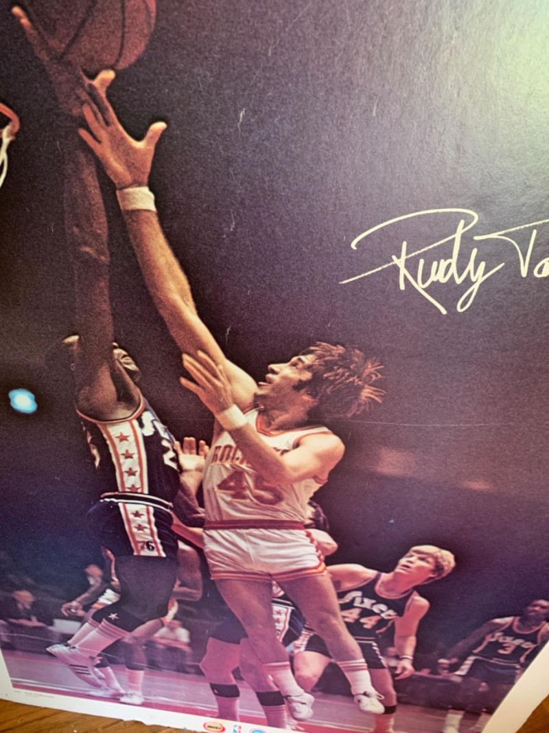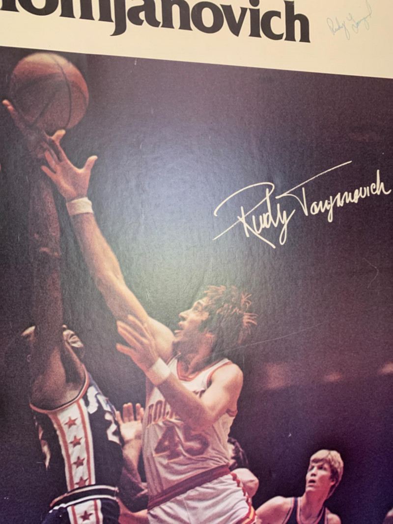 Signed Poster of Rudy Tomjanovich who is ina Houston Rockets legend. He played his entire 11-year NBA career (1970-1981) as a power forward with the Rockets, earning five All-Star selections. He later coached the Rockets to back-to-back NBA Championships in 1994 and 1995, and his #45 jersey is retired by the team.Basketball player Rudy Tom Janovich signed poster. NBPA 1977 -1978.