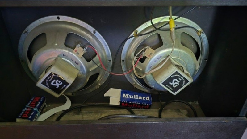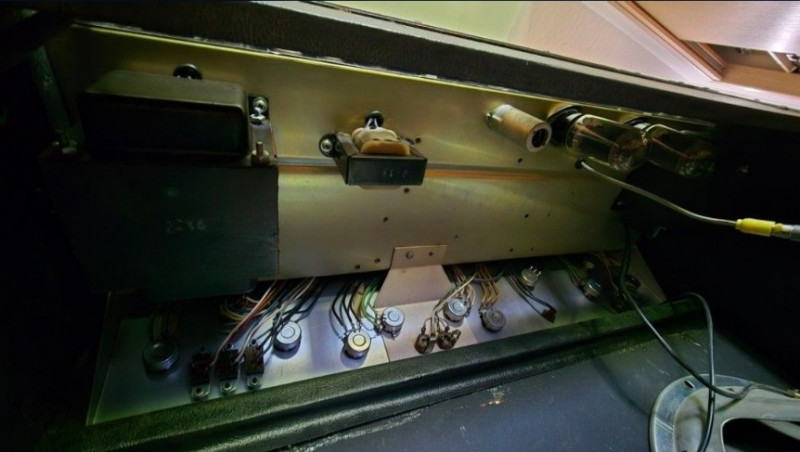 Vintage Gibson Standel amp here. Built in Maestro PS1 circuit, reverb tank, and Maestro fuzz tone. Tube amp section was serviced by soldehaus and solid state section serviced by Condor electronics.