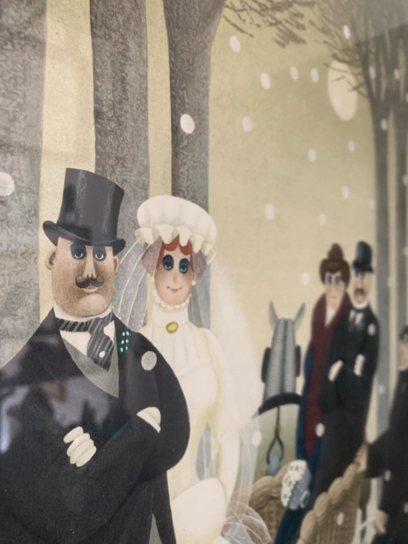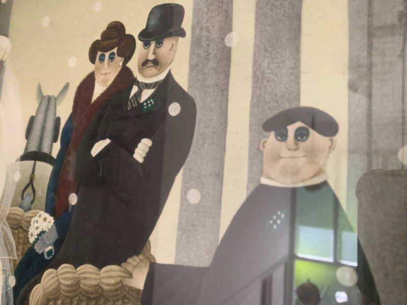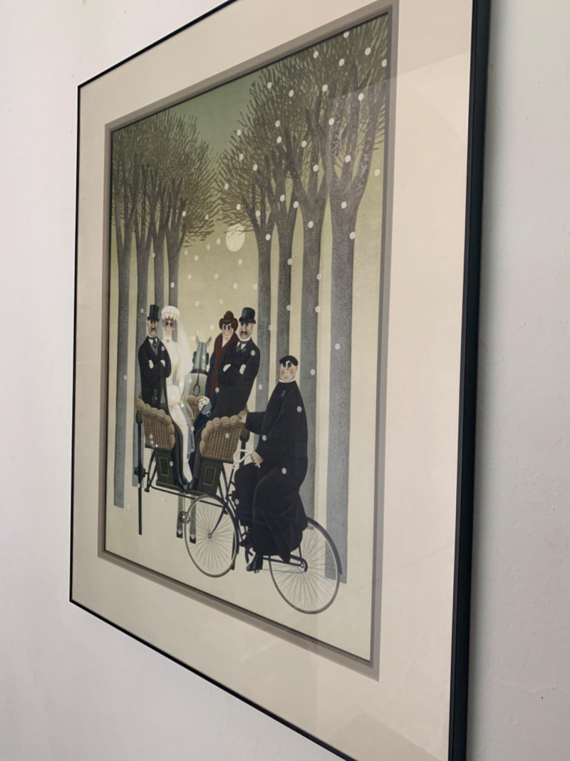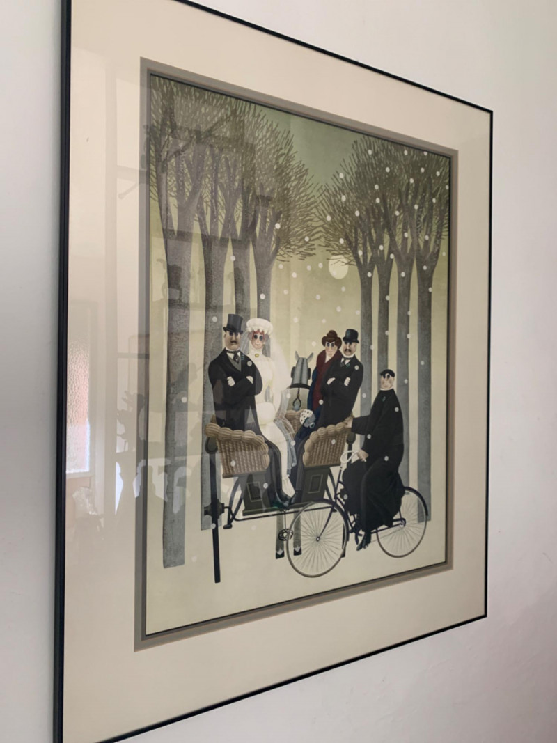 Published by Mattieu, Zurich. Gallery Quality printed offset lithograph poster. Jan Balet (1913-2009) Original Exhibition Poster. Framed print of a whimsical scene by Jan Balet, a German-born artist known for his commercial illustrations and later for his paintings, etchings, lithographs, and children's books. Framed hanging hardware, ready to hang. German born United States America artist.