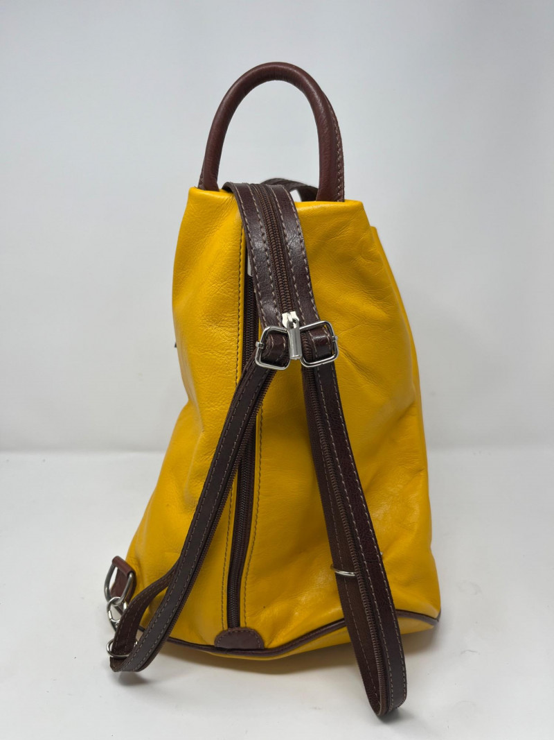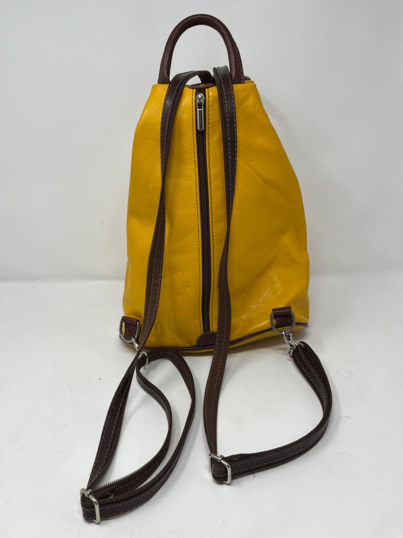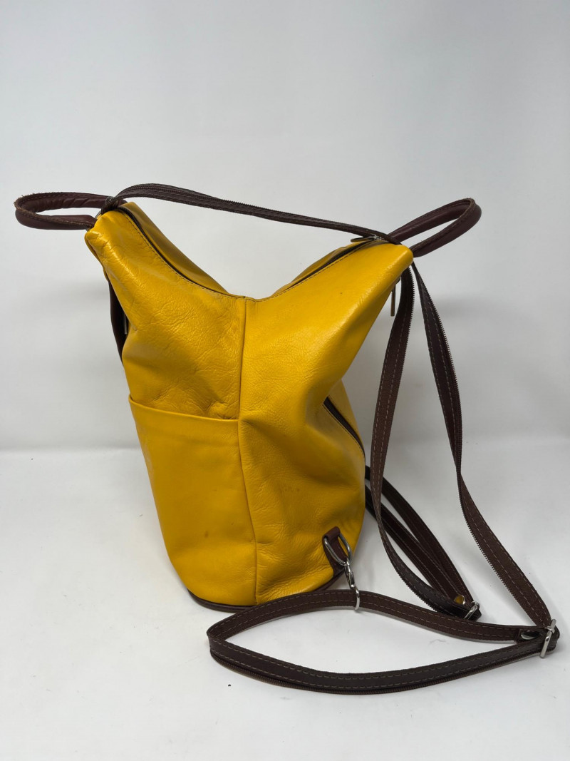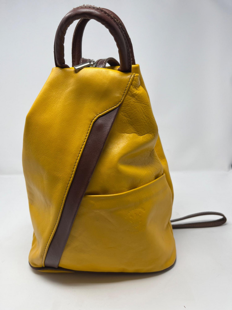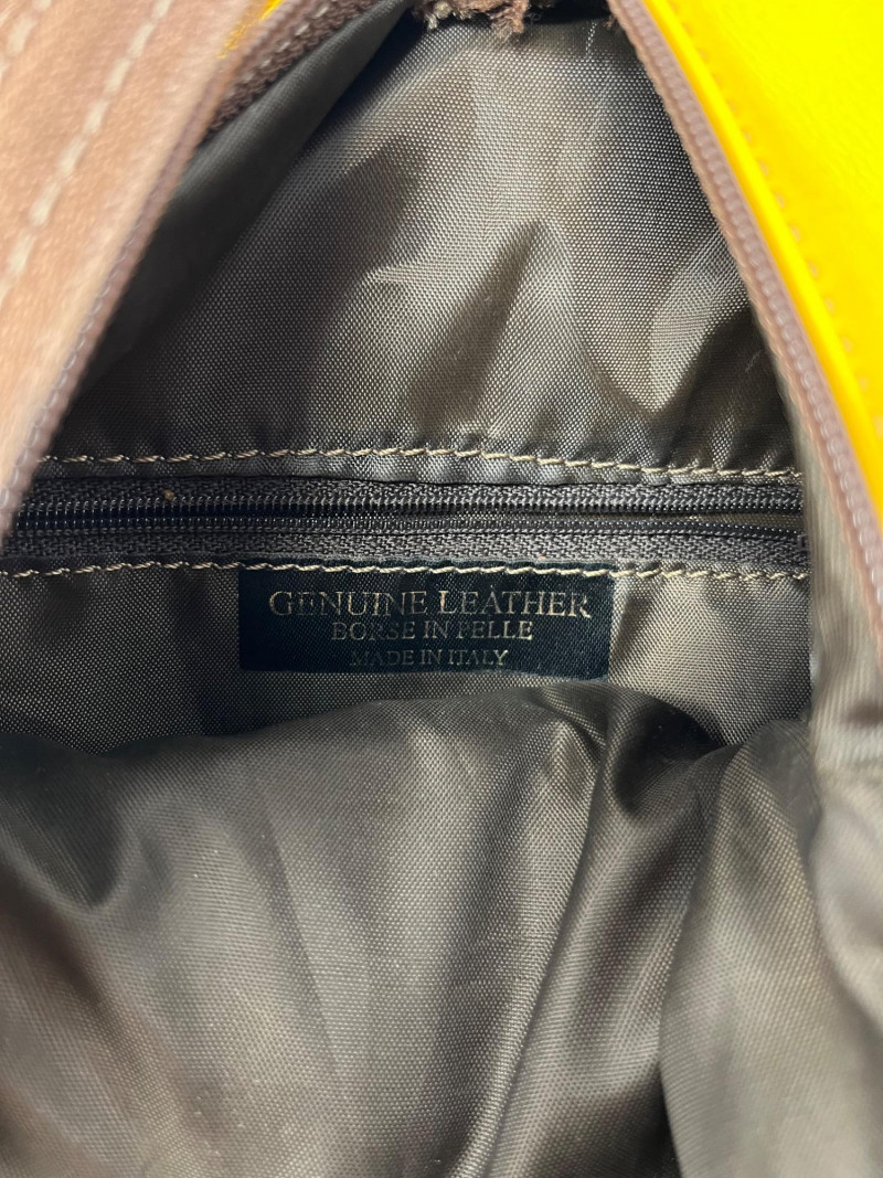 Stamped genuine leather made in Italy on the face. Uniquely designed zipper on straps allows it to be worn as a pack back or a crossbody style. Very good condition.