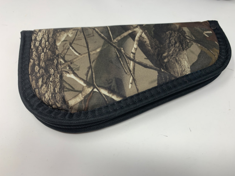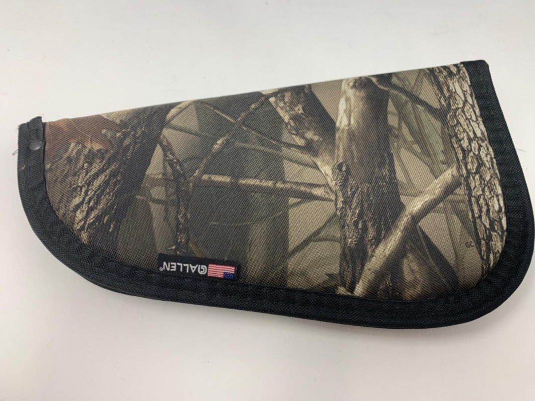 Soft Gun Case/Pouch. A camouflage-patterned soft case or pouch, for a smaller firearm or accessories, with a zipper closure. The brand "ALLEN" is visible on a tag attached to this item. 10 1/2 inches