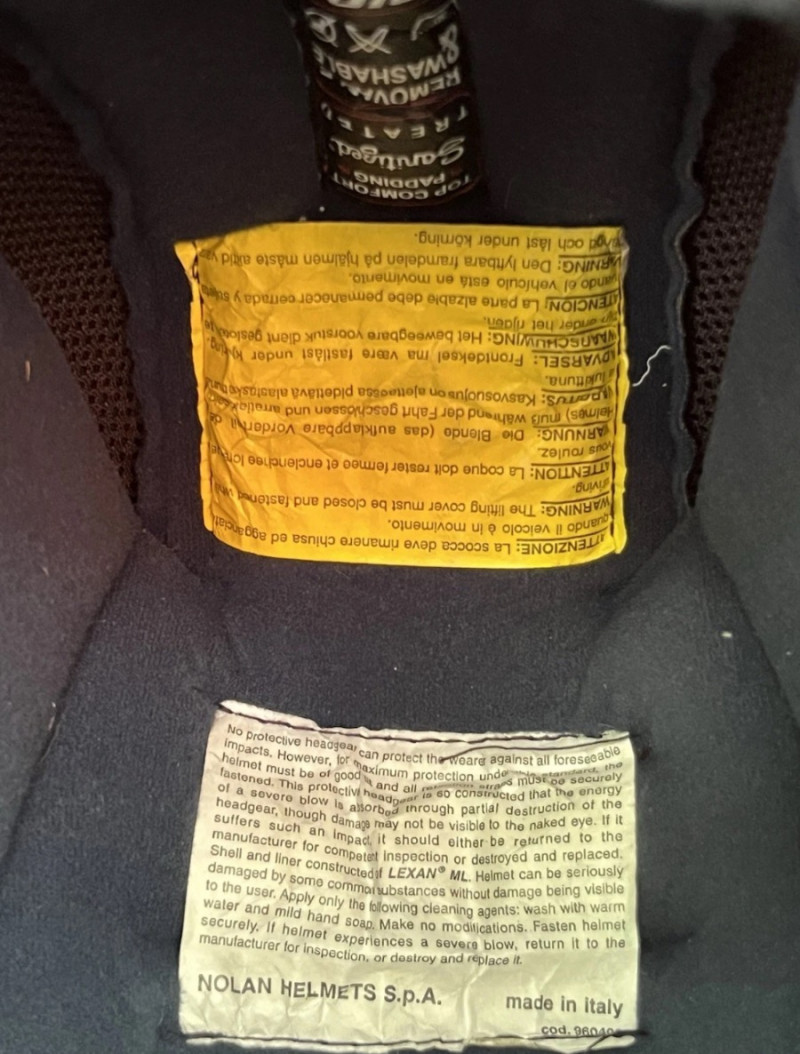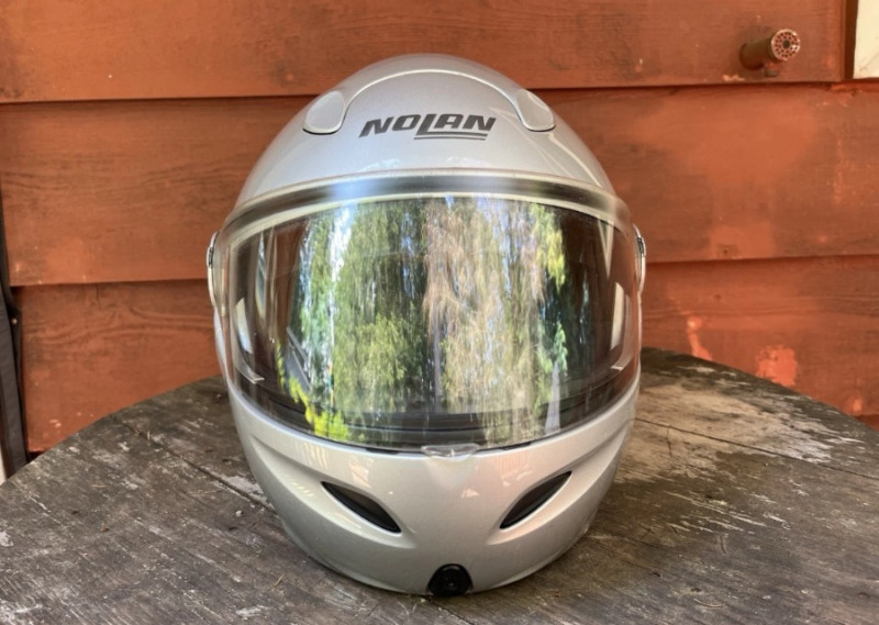 Vintage Nolan full-face helmet with smart lock release. Very lightly used size small. Fully padded interior, with visor face coverage. Made in Italy and DOT approved for enjoying summer rides.