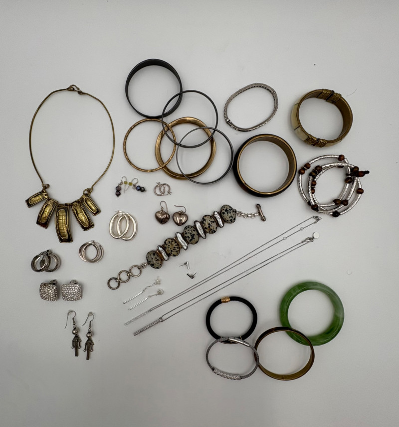 Mixed jewelry lot - what you see is what you get. Please note that while we gave the pieces a look, they were not inspected; nothing egregious was noted during that quick look, however. Note - there is some sterling mixed into this lot.