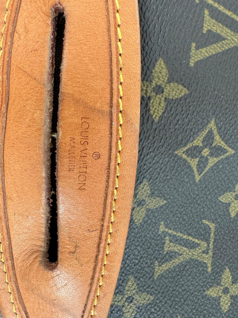Material: Classic Louis Vuitton monogram canvas with tan leather trim