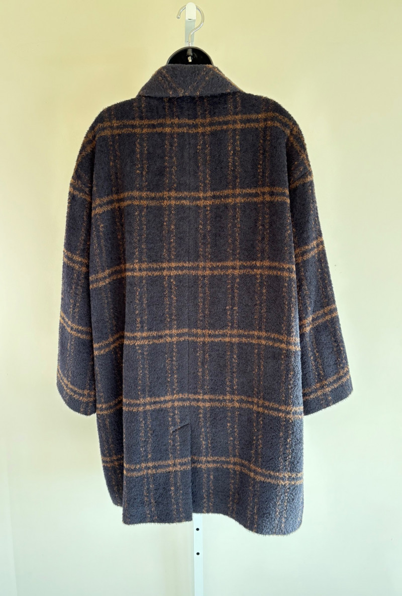 Lot # 45 - Classic Midnite Blue/Beige Alpaca & Wool Coat + Scarf - Eileen Fisher