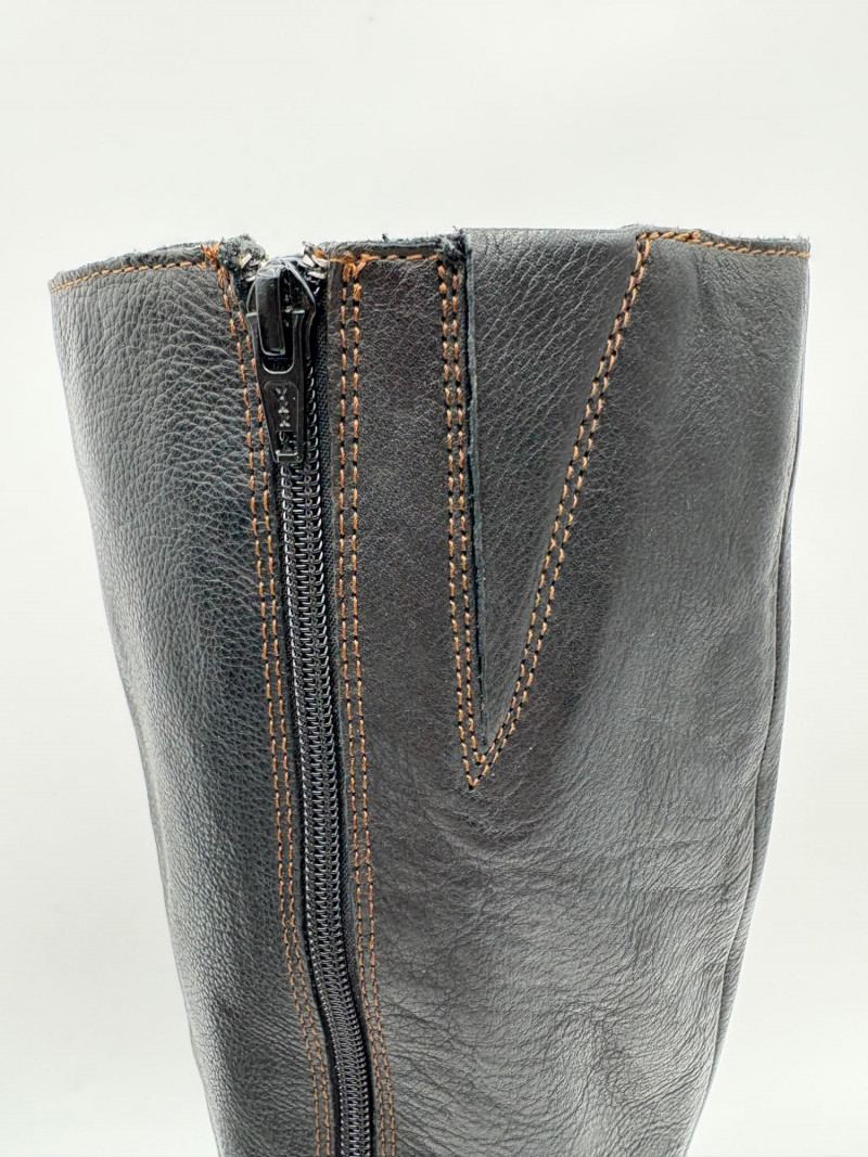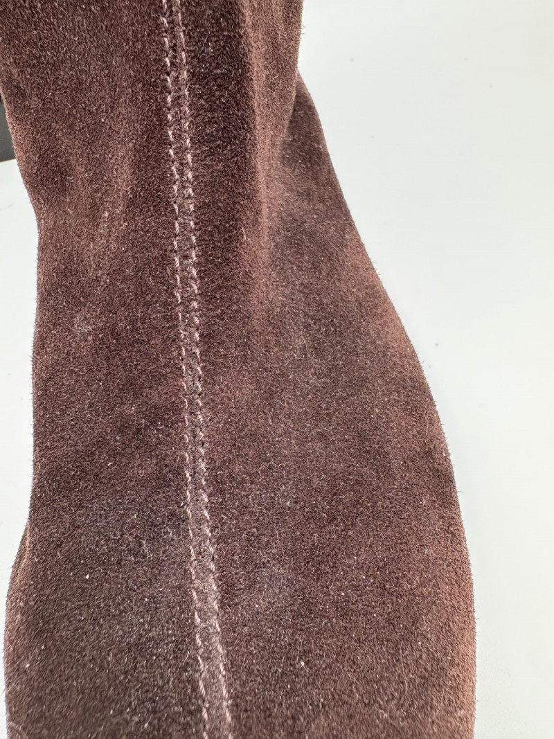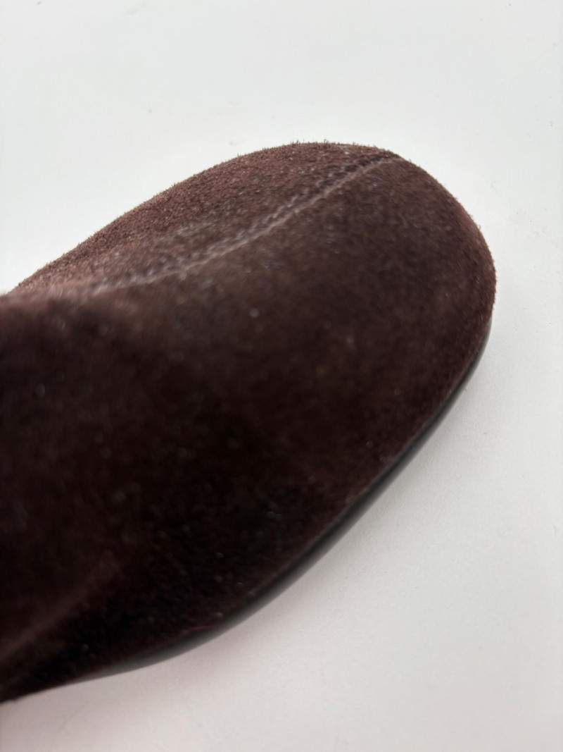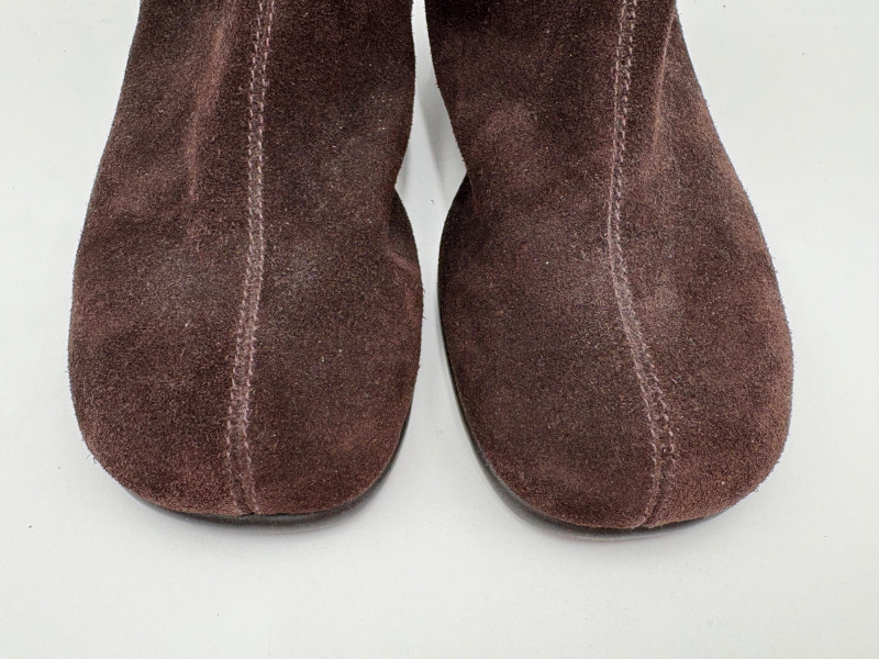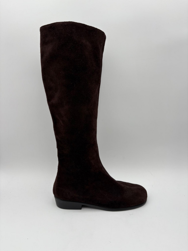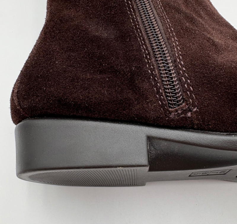 BOC black leather boots with inside zip, adjustable calf gusset, and buckle detailing. Size 7. Aerosoles dark chocolate brown suede boots with adjustable zip calf gusset, inside leg zip, and semi-square toe. Appear to be new. Size 7.