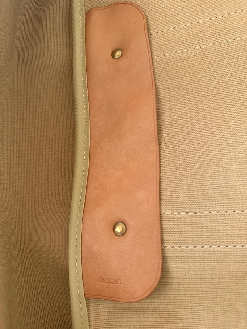 Dimensions: Approx. 22” W x 21” L Material: Coated canvas with natural cowhide leather trim and handles