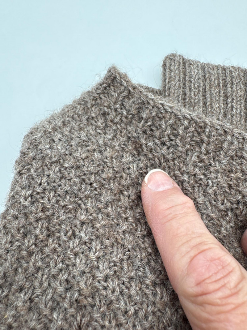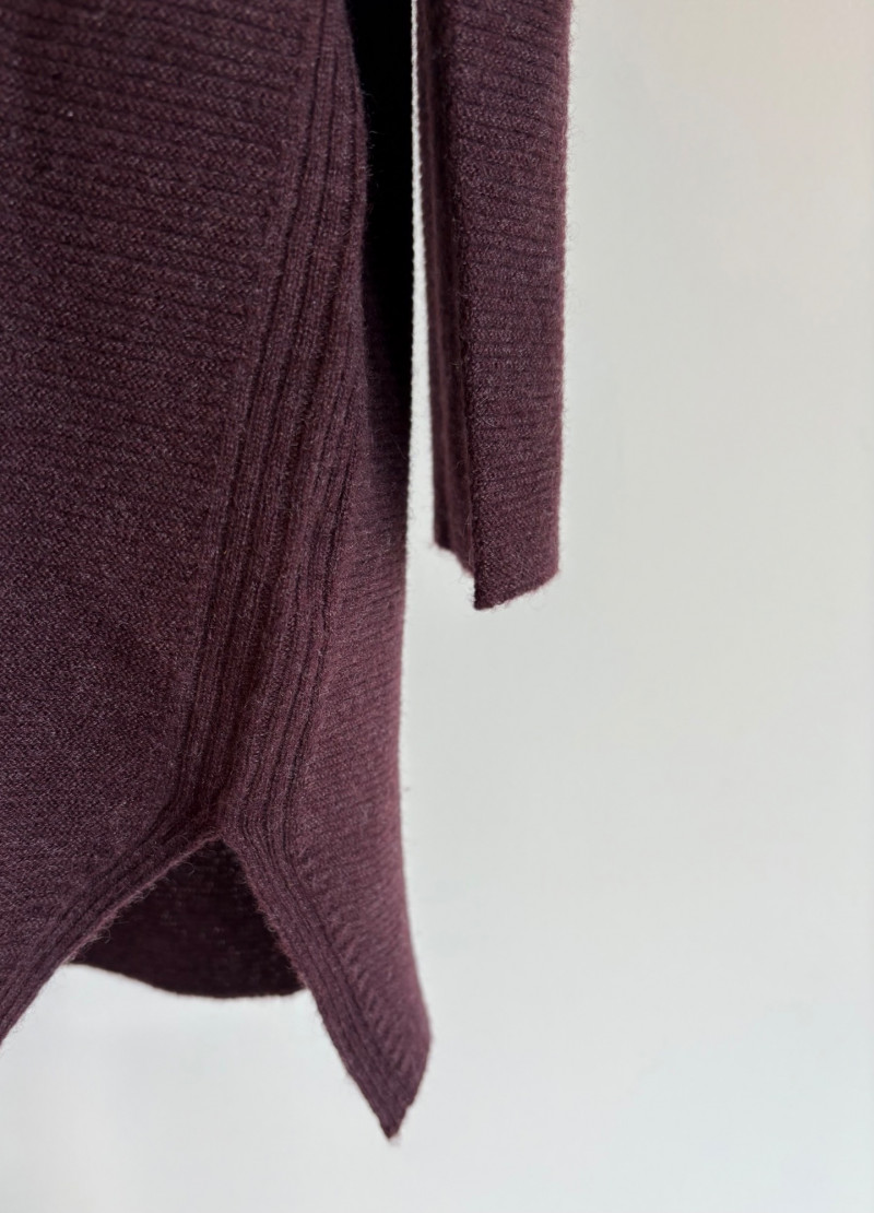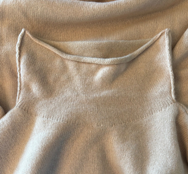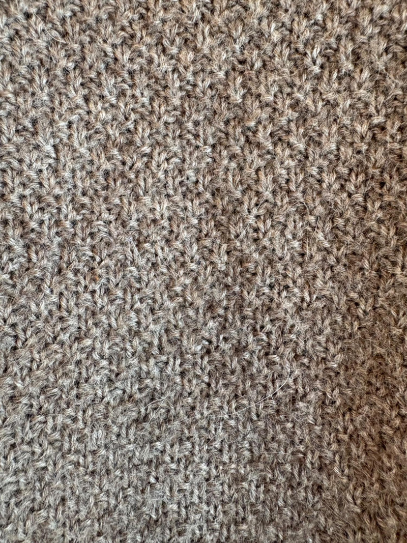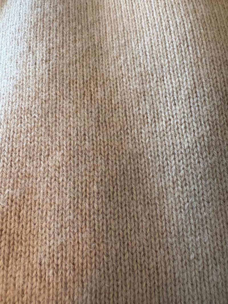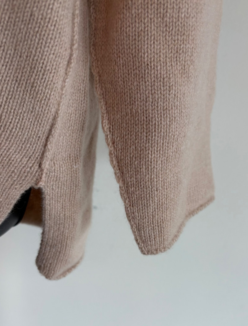 3 wonderfully soft sweaters - all in different styles in neutral tones from Eileen Fisher. All three sweaters measure 25.5" pit to pit. Beige turtleneck sweater has dropped shoulder seams, long sleeves, rolled hem on sleeves/cuffs/neckline, and a split hem with back approximately 2" longer than front. Recycled cashmere/lambs wool blend. Size tag says L. Burgundy/brown sweater has subtle horizontal rib weave, long sleeves, split hem, decorative side seams and curved neckline. 100% cashmere. Size tag says L. Brown textured sweater has round neckline, split hem, and ribbing at cuffs/bottom hem. Alpaca/silk blend. Size tag says XL. Note: sweater is in good condition but would be improved with a quick sweater shave. We also found one slight discoloration at neckline that should launder out. - see last photo.