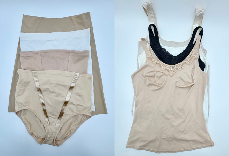 Large grouping of shapewear from various manufacturers. All have been used but are in good to excellent condition. Lot consists of: - 4 torso shapers - 2 tummy brief-like shapers (note that the Miraclesuit has a couple small discolorations near the back waistline - see last photo.) - 2 lighter weight "bike short" style shapers covering waist to mid-thigh Please see photos for brands and sizes.