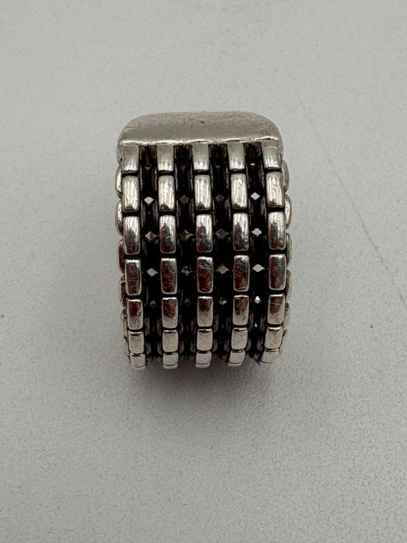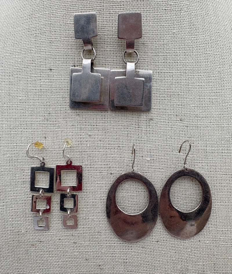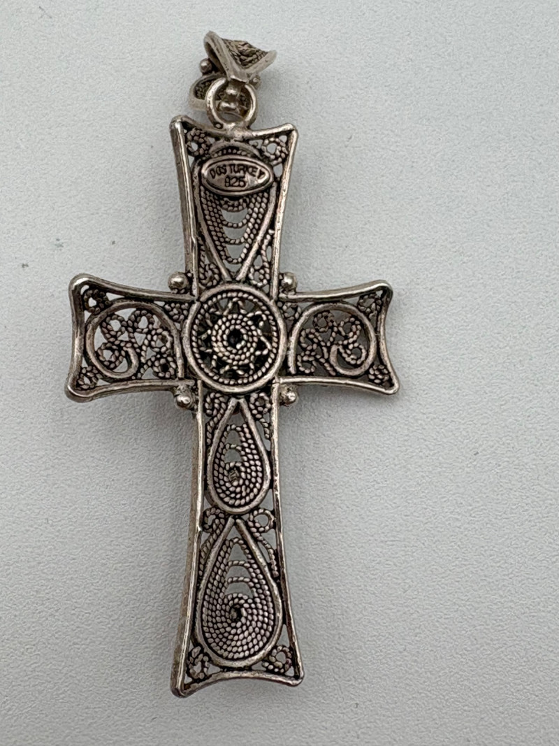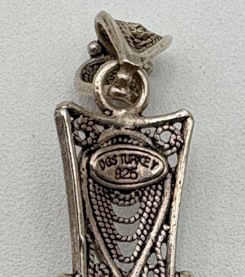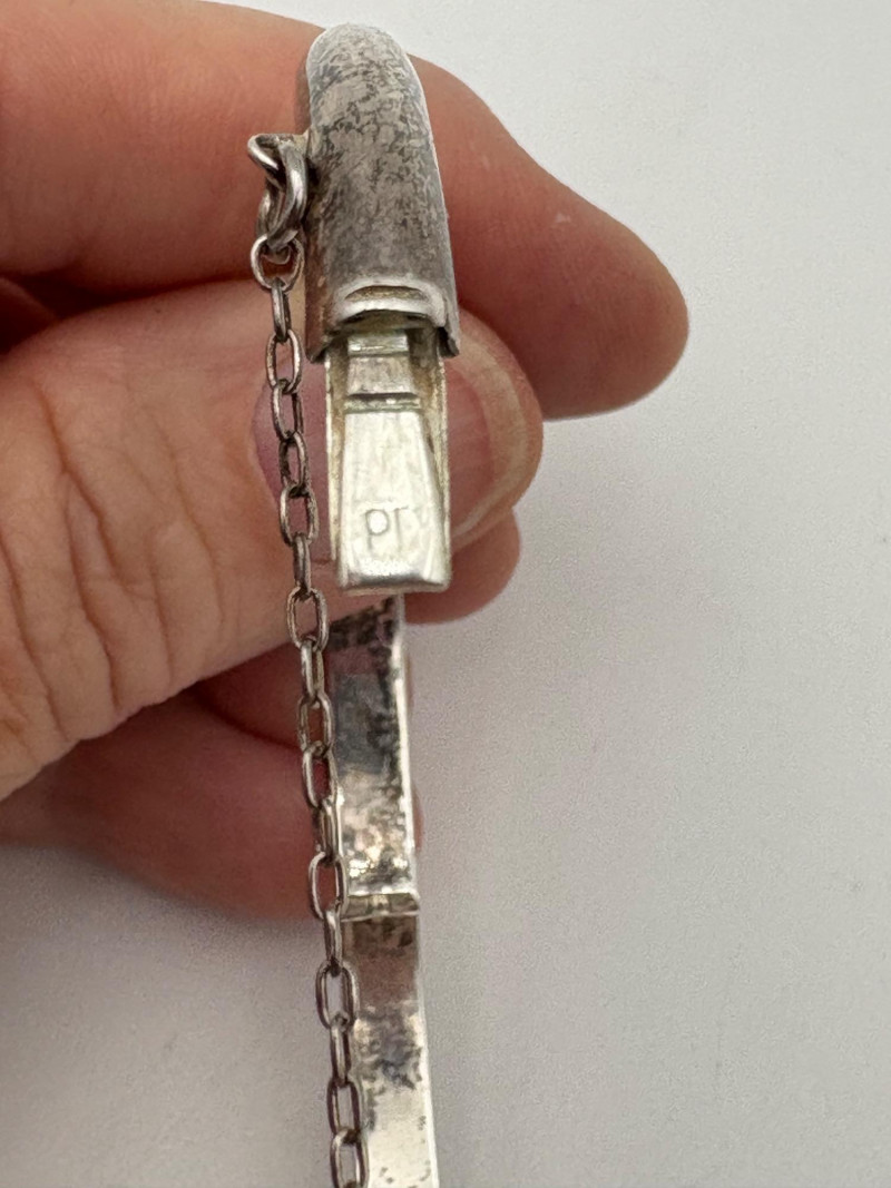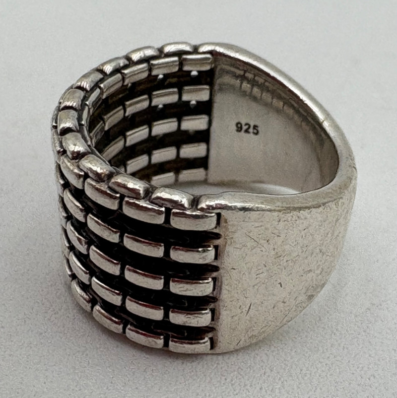 Group of sterling jewelry includes 7 bracelets, 3-strand chain necklace, ring, and 3 pairs of earrings. Total weight (not including the bracelet with labradorite stone) is 124 grams. Bracelet with stone weighs 8 grams. Assorted bracelets are all marked .925 or "STER" or "sterling" or "silver". Several are from Mexico and have maker marks we are unfamiliar with. One with laborodite stone is from LR https://www.ebay.com/itm/145715929729 Trio of pierced earrings - one from Taxco, Mexico. All marked .925 or "STER" John Hardy "Jai" ring. Marked .925 and "JAI". Filigree cross marked .925 and "DGS Turkey" https://www.ebay.com/itm/145715929729