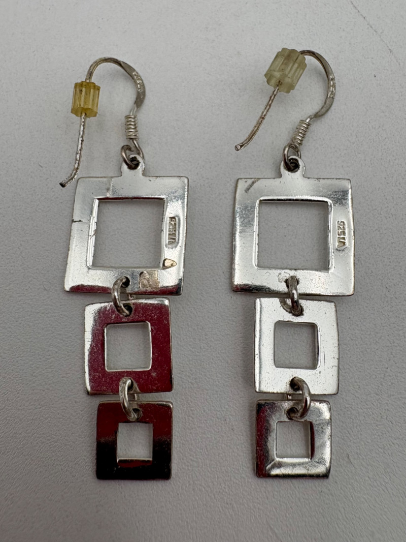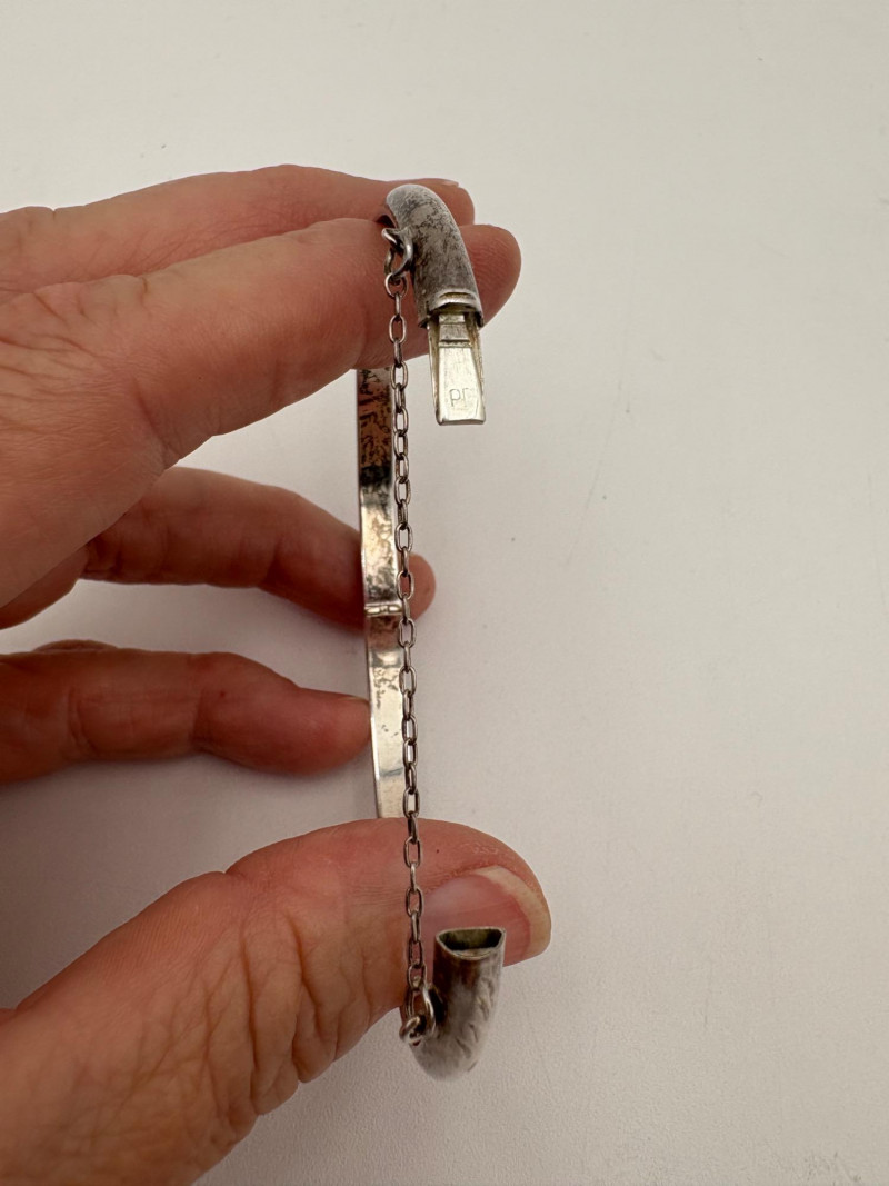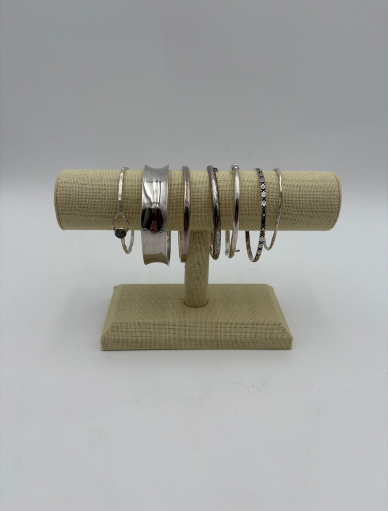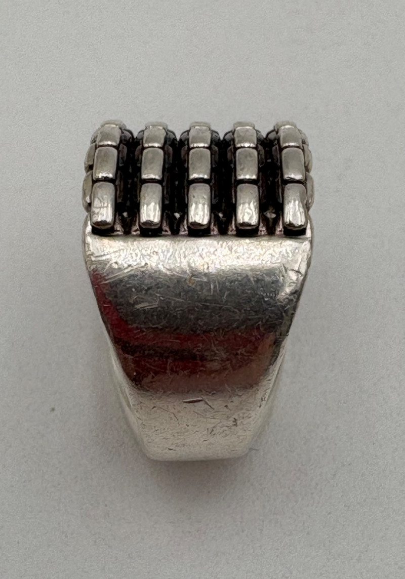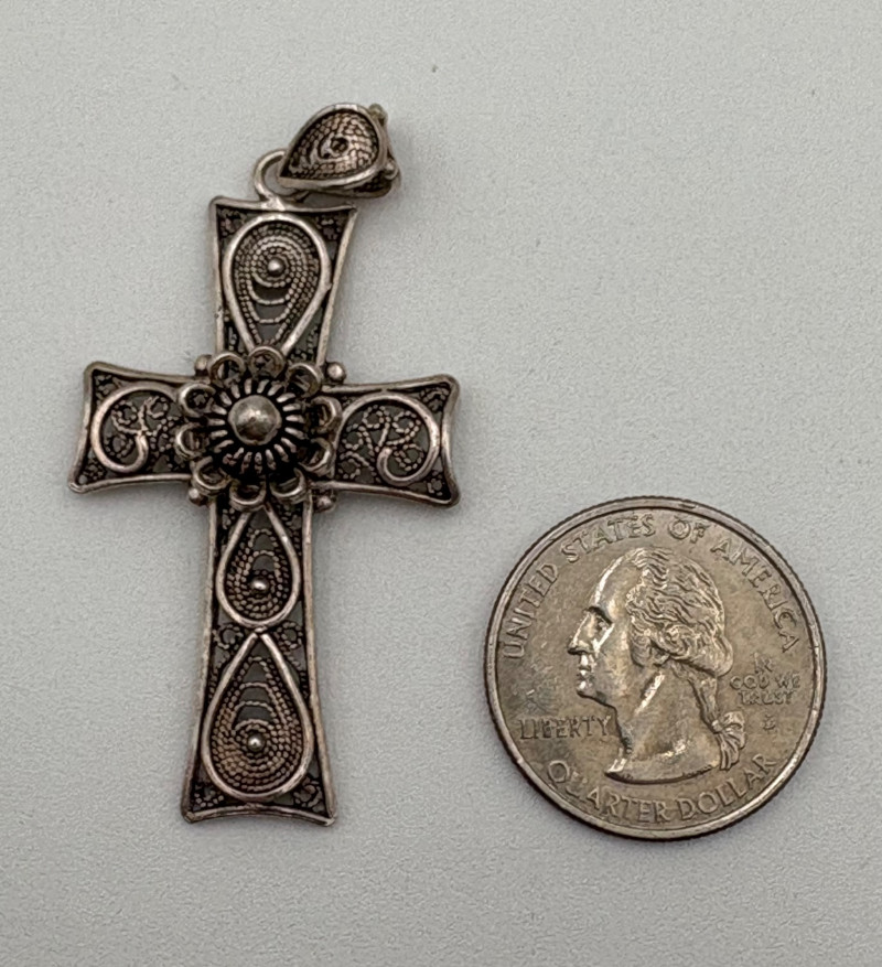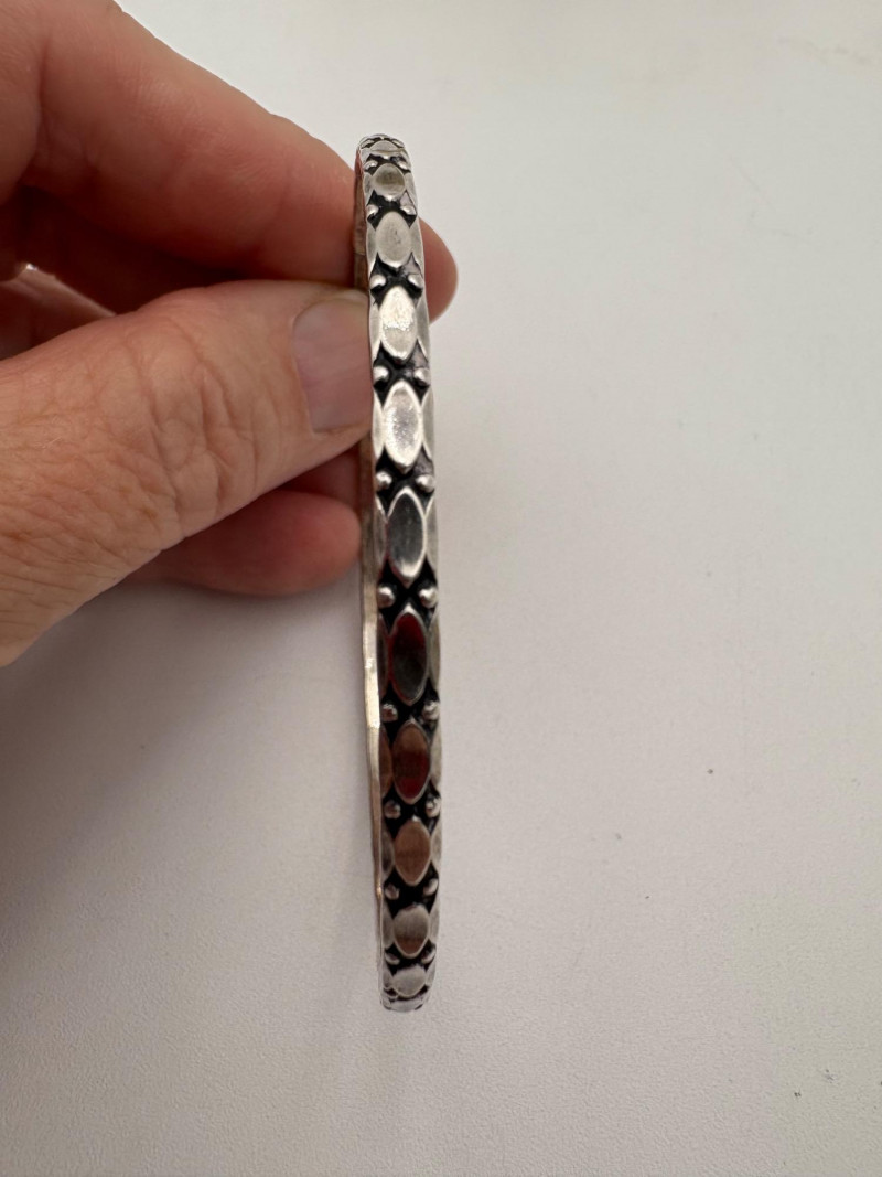 Group of sterling jewelry includes 7 bracelets, 3-strand chain necklace, ring, and 3 pairs of earrings. Total weight (not including the bracelet with labradorite stone) is 124 grams. Bracelet with stone weighs 8 grams. Assorted bracelets are all marked .925 or "STER" or "sterling" or "silver". Several are from Mexico and have maker marks we are unfamiliar with. One with laborodite stone is from LR https://www.ebay.com/itm/145715929729 Trio of pierced earrings - one from Taxco, Mexico. All marked .925 or "STER" John Hardy "Jai" ring. Marked .925 and "JAI". Filigree cross marked .925 and "DGS Turkey" https://www.ebay.com/itm/145715929729
