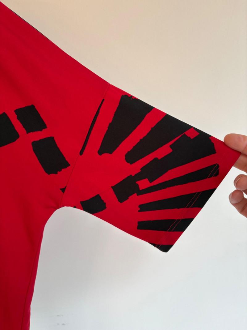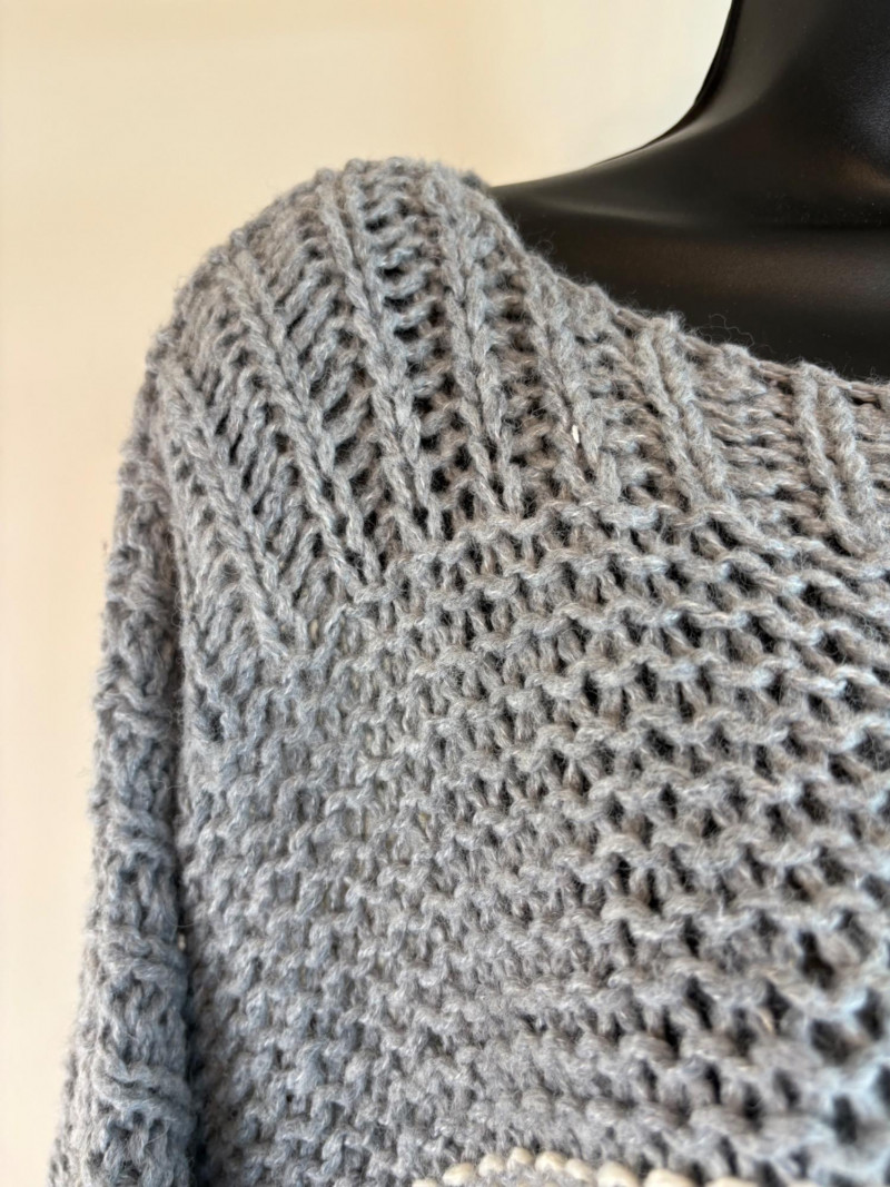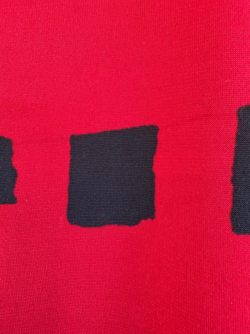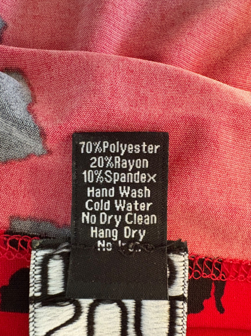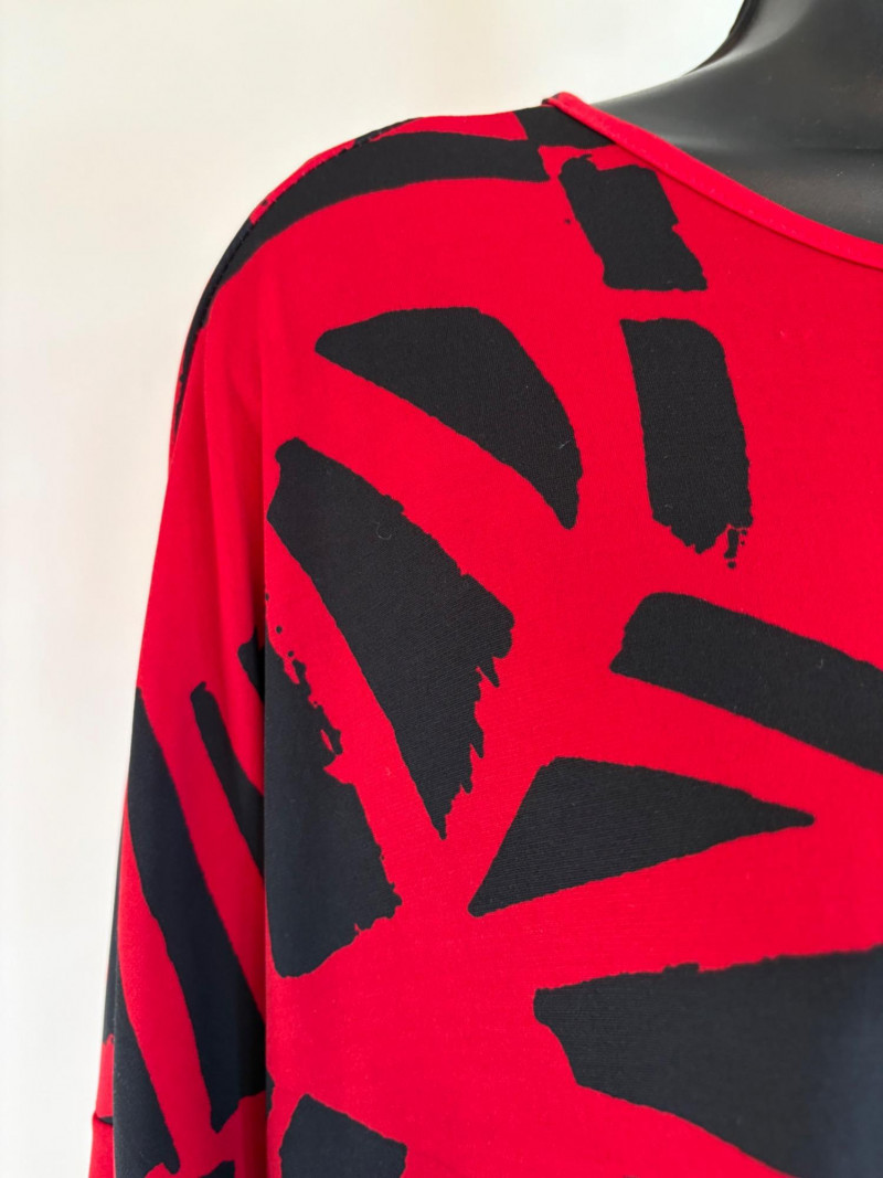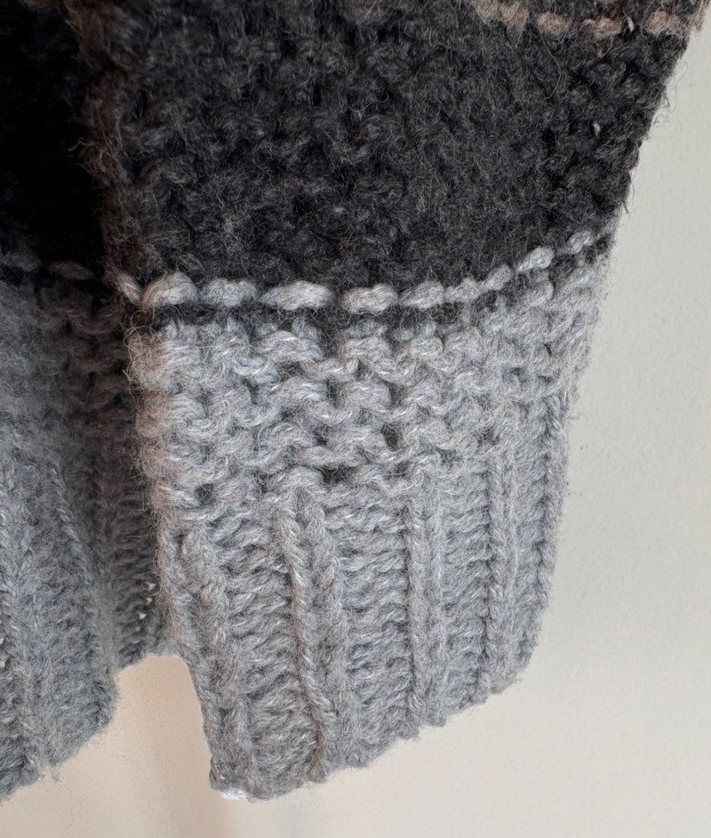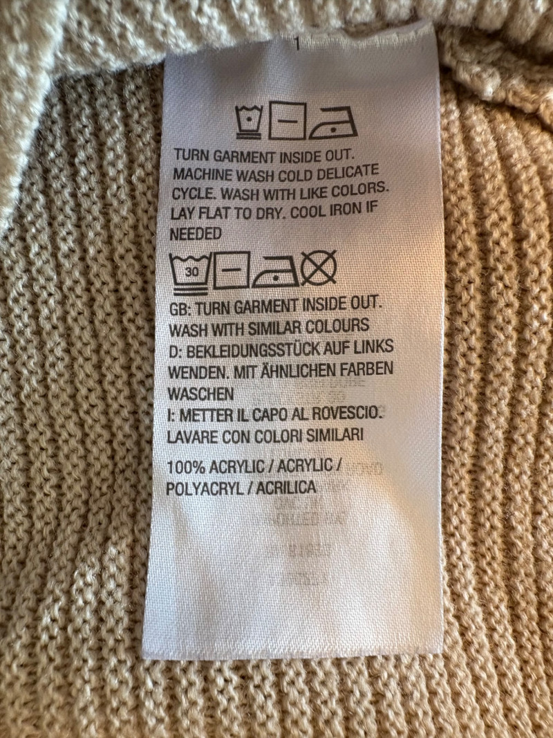 Combination lot of sweaters and a comfortable shirt. All pieces measure between 29" and 31” pit to pit, so these are larger than many other pieces in this auction. Variegated beige/brown sweater from Eileen Fisher has elbow length sleeves and ribbing at neckline & sleeve ends. 100% linen. Size tag says XL. Note - naturally occurring slubs in linen often pill - a date with your sweater shaver will make this look new again. Beige oversize sweater from D&Co. has V-neck, ribbed sleeves with dropped shoulder seams, angled front patch pockets, and curved back hem that is longer than front. Acrylic. Size tag says XL, but we think it is more generous. Old Navy striped sweater has curved neckline, dropped shoulder seams, and ribbing at cuffs and lower hem. Stripes are variable shades of brown, gray, and cream in a loose weave. Polyester/acrylic/wool blend. Size tag says XL. Clara Sun Woo red and black super stretchy casual shirt with dropped shoulder seams, short sleeves, curved neckline, and shark bite hem. Polyester/rayon/spandex blend. Size tag says XL.
