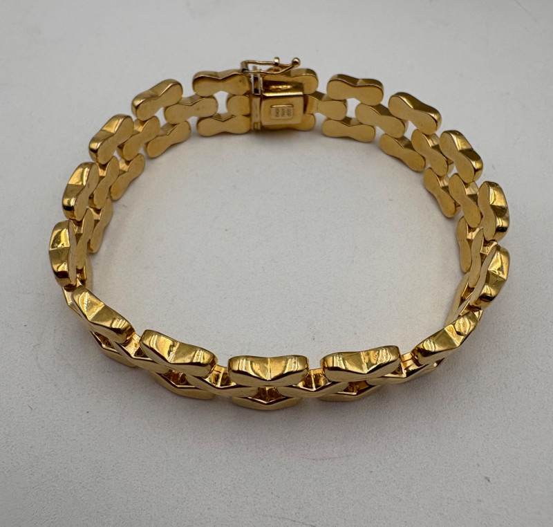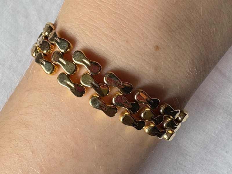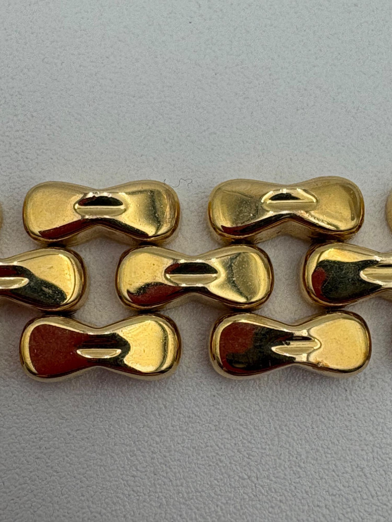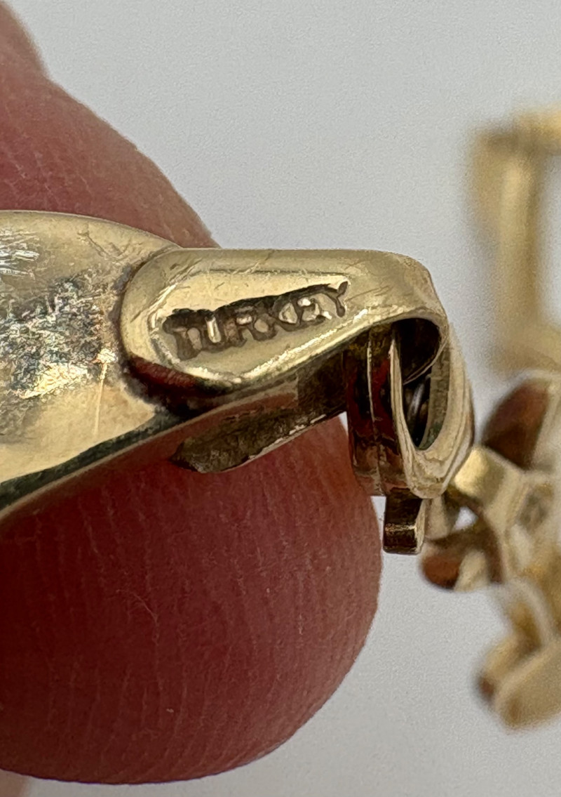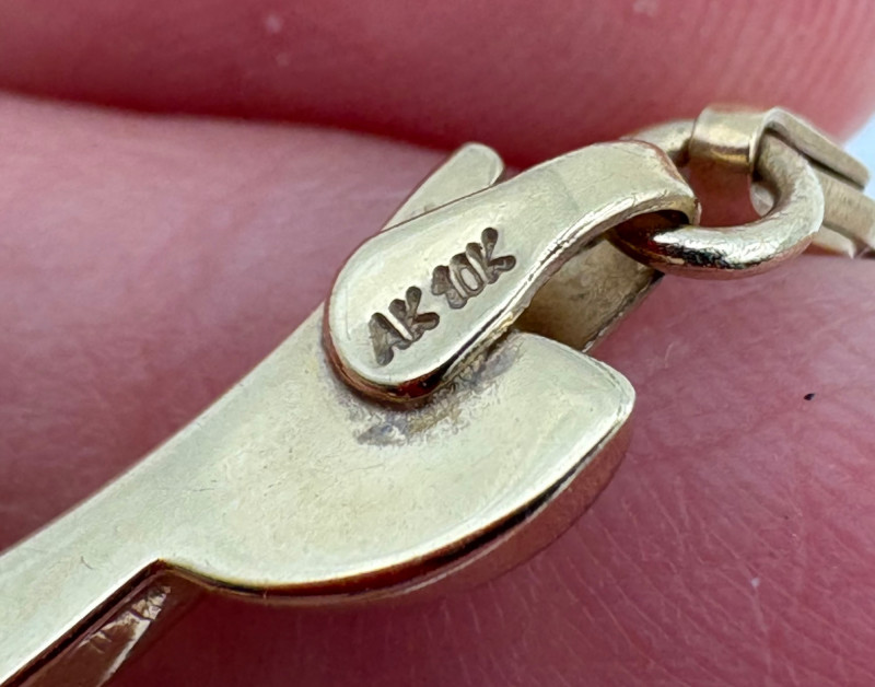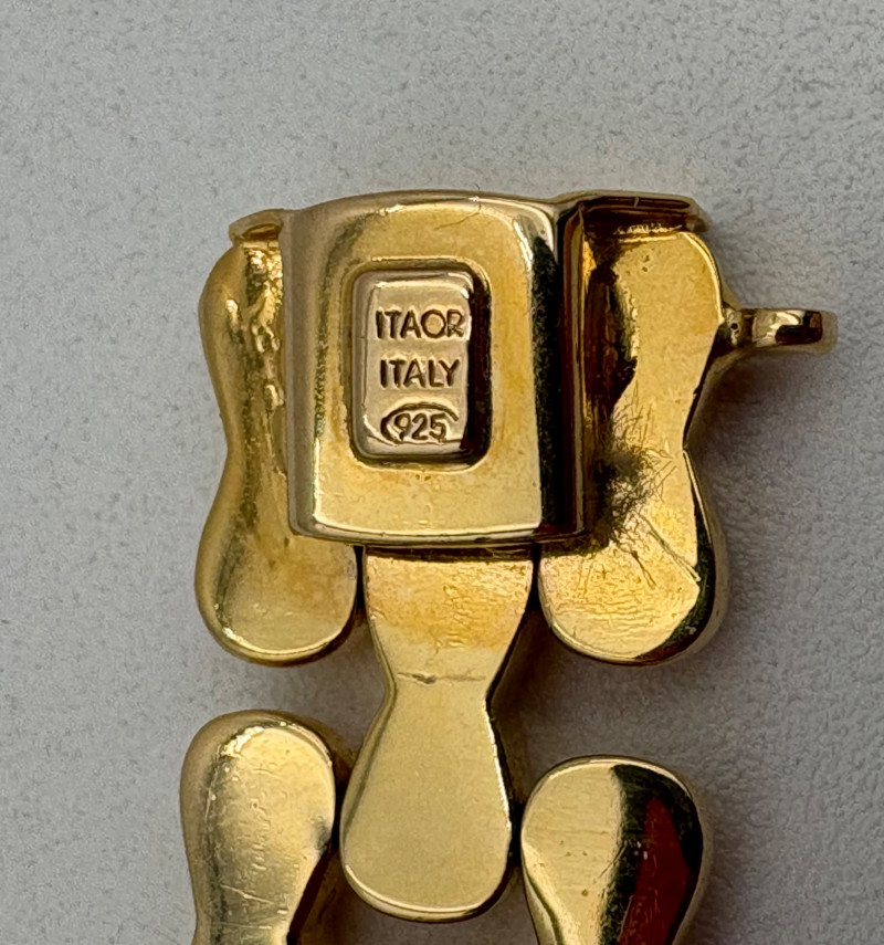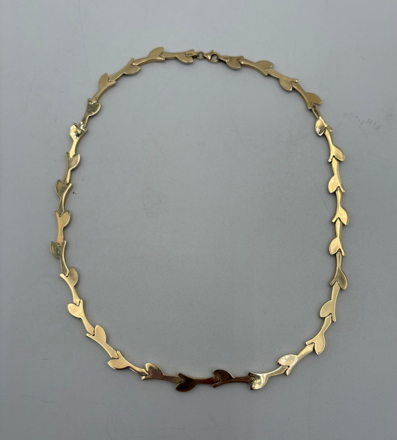 2 lovely pieces of jewelry. Necklace has delicate leaf pattern and measures 17" L. The small cuts in the leaf pattern give the illusion of sparkly stones at a distance. Marked "AK 10K" and "Turkey" near clasp. Bracelet has interlocking links and a slide closure with wire post clasp. Measures 7.75" L. Marked "ITAOR Italy .925" on clasp.
