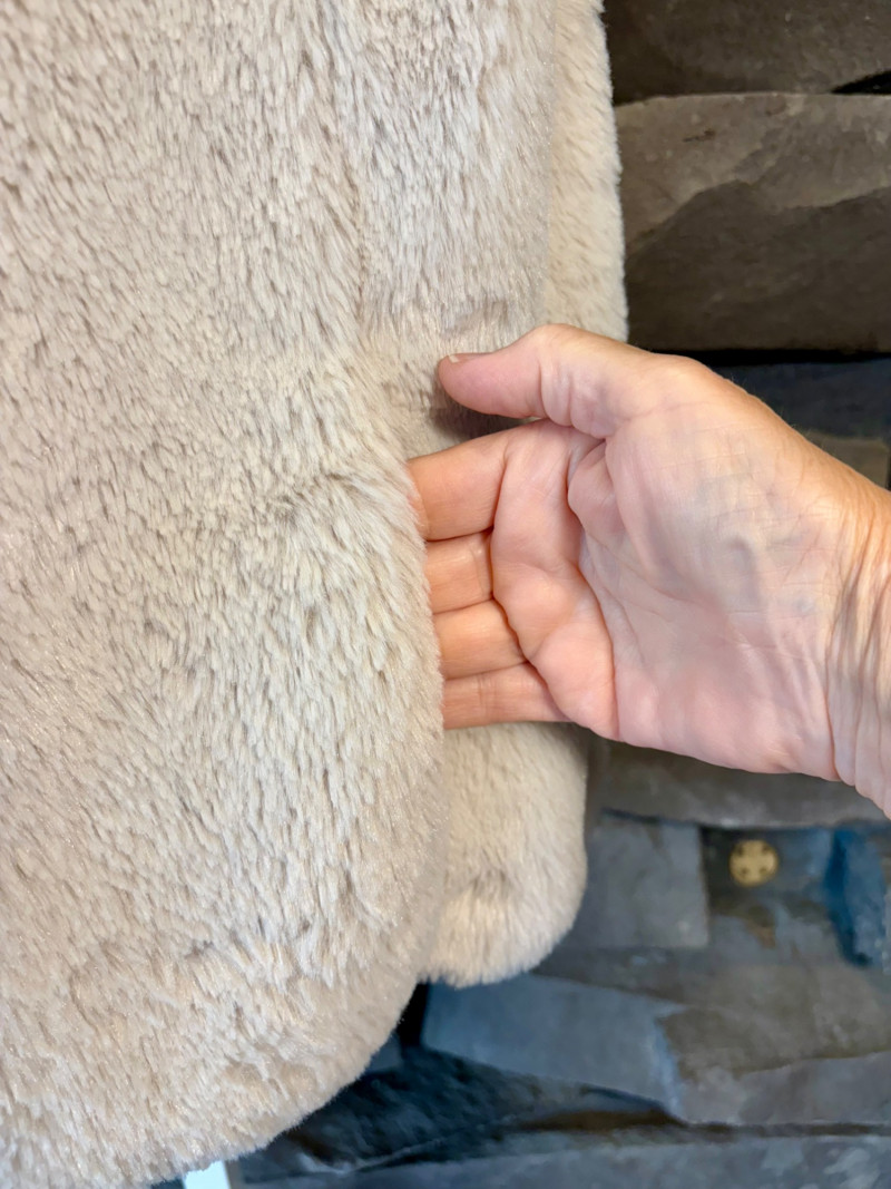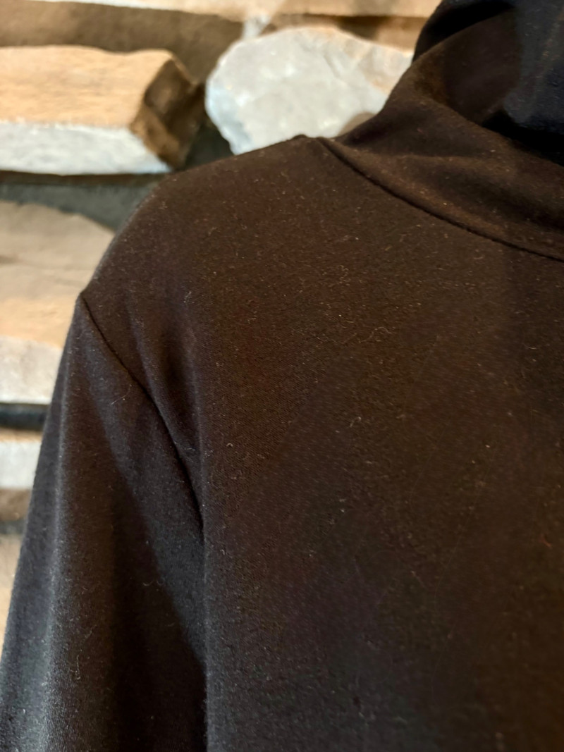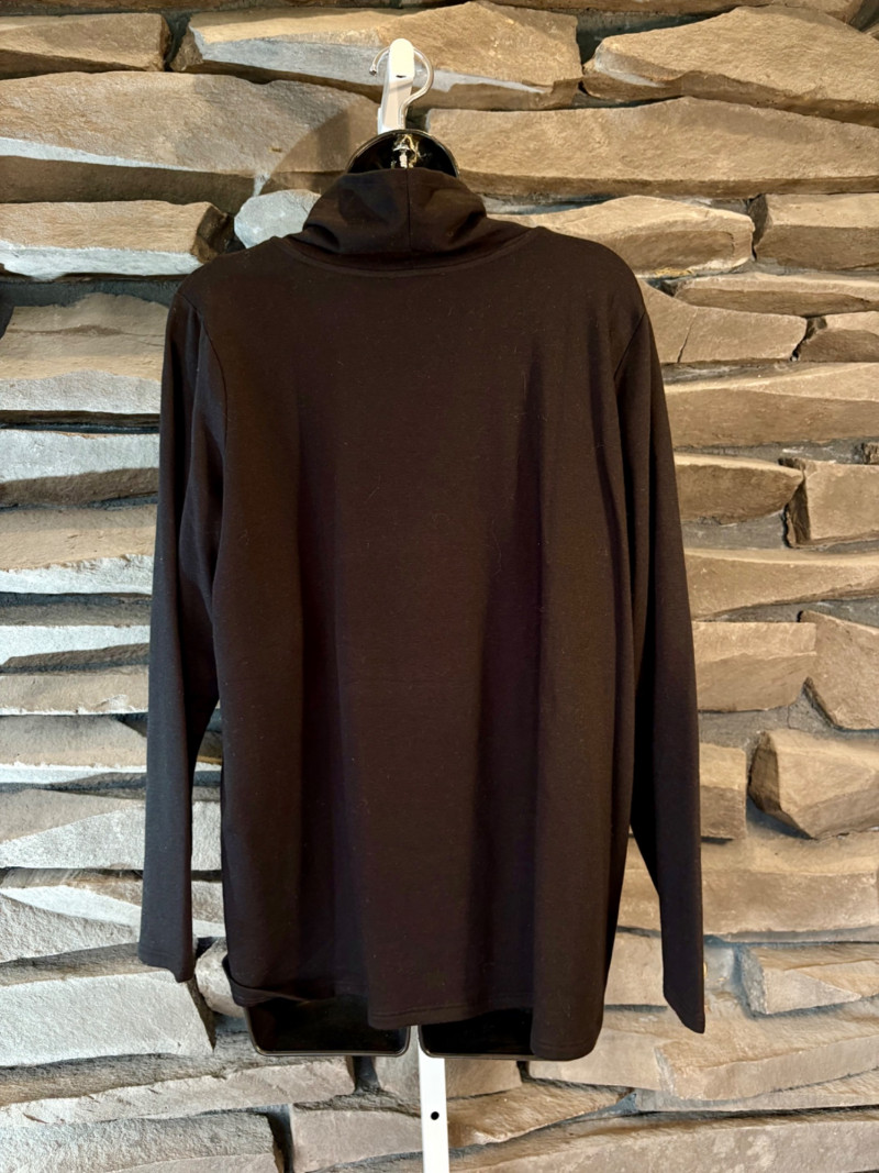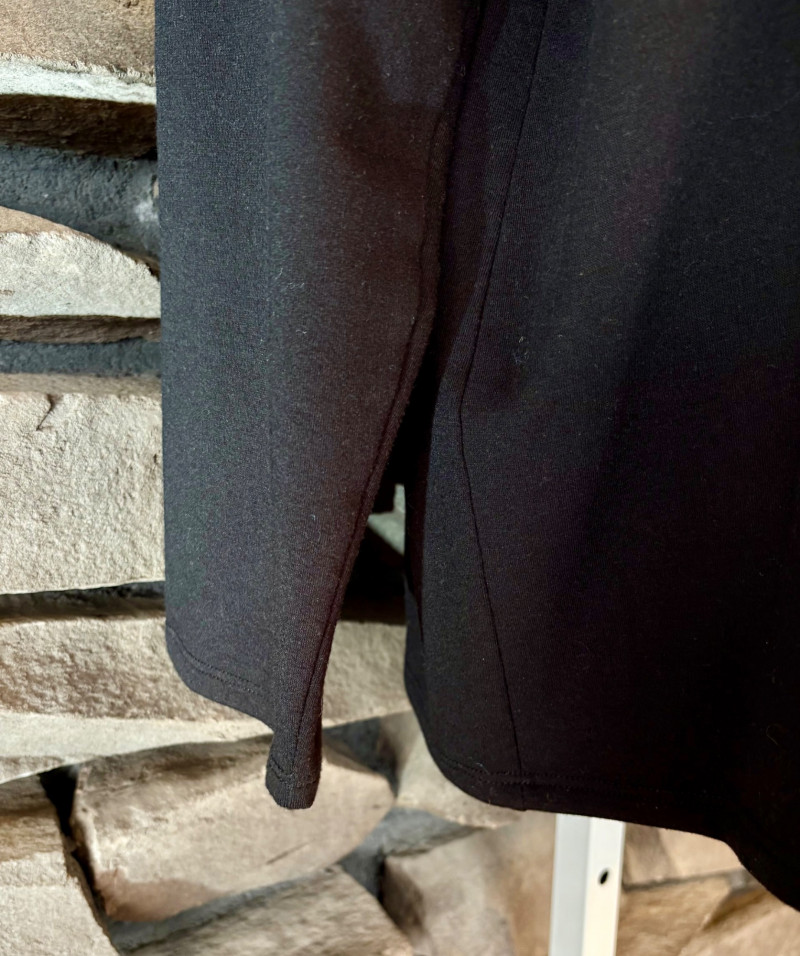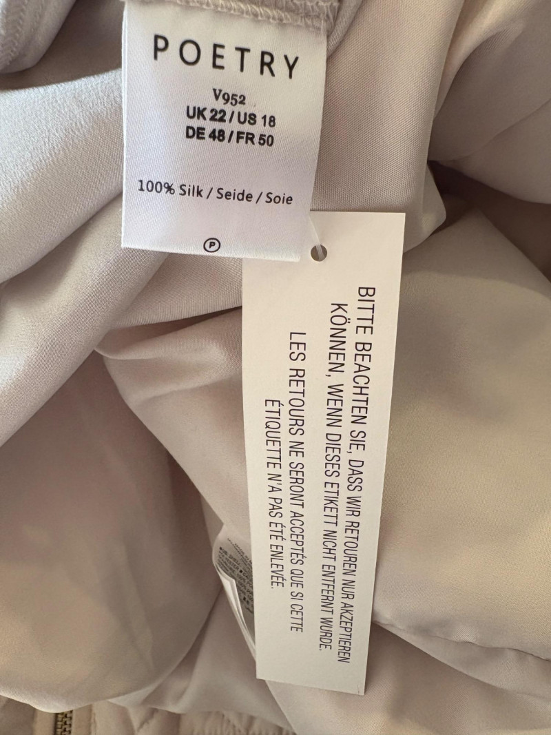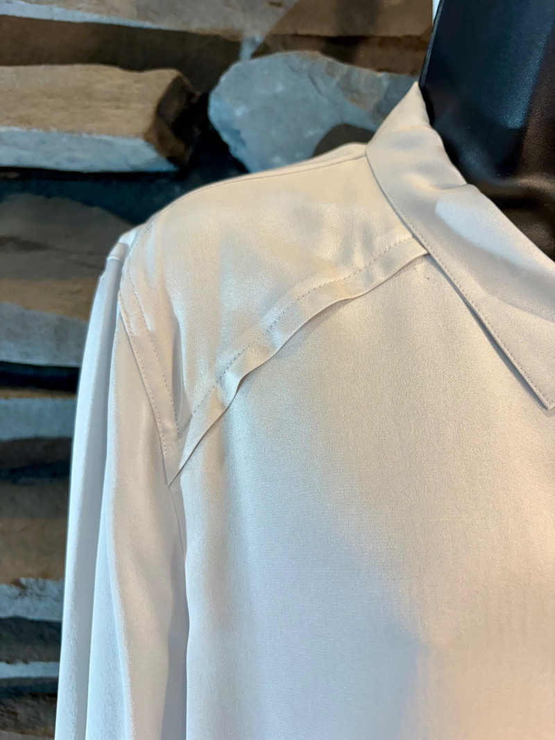 Group of great separates to mix and match in black and cream. Creamy smooth vest from Old Navy has diamond-shaped quilting, zip front closure, gold hardware, and front zip close pockets. 100% polyester. Measures 25.5" pit to pit and 26" from back neckline to hem. Size tag says XXL. Black classic turtleneck form Eileen Fisher. Tencel Lyocell/organic cotton/elastane blend. Measures 24" pit to pit and 24.5" from back neckline to hem. Size tag says 1X. Faux fur vest from Old Navy has silver front zip closure, princess seaming with in-seam front pockets, and is fully lined. 100% polyester. Measures 24" pit to pit and 23.5" from back neckline to hem. size tag says XL. Creamy taupe silk shirt from Poetry has long sleeves with 2 button pleated cuffs, front button closure, front curved yoke, back curved yoke with pleat, and front pieced hem. 100% silk. Measures 24" pit to pit and 29" from back neckline to hem. Size tag says 18. New without all tags. Paired with black & cream heavy knit scarf from Eileen Fisher in a silk/wool blend. Measures approximately 8" x 40".