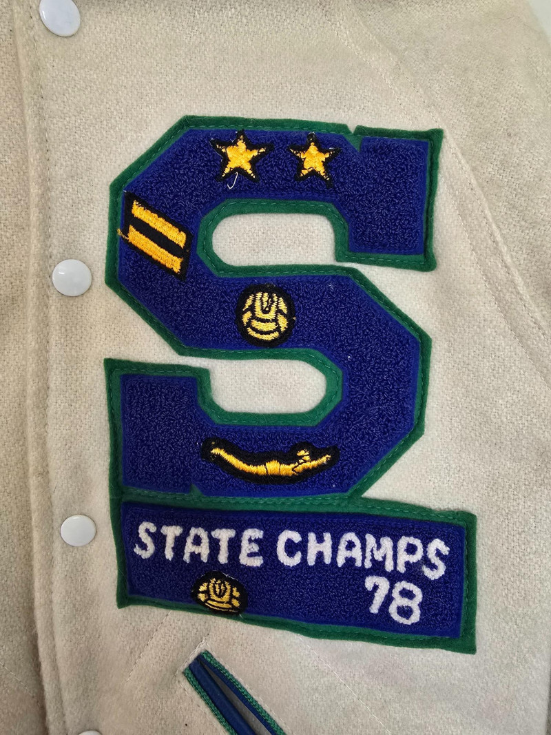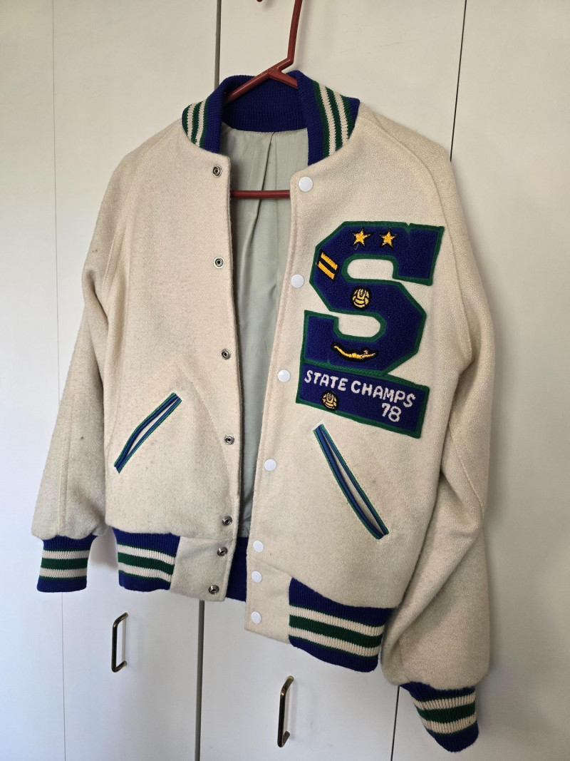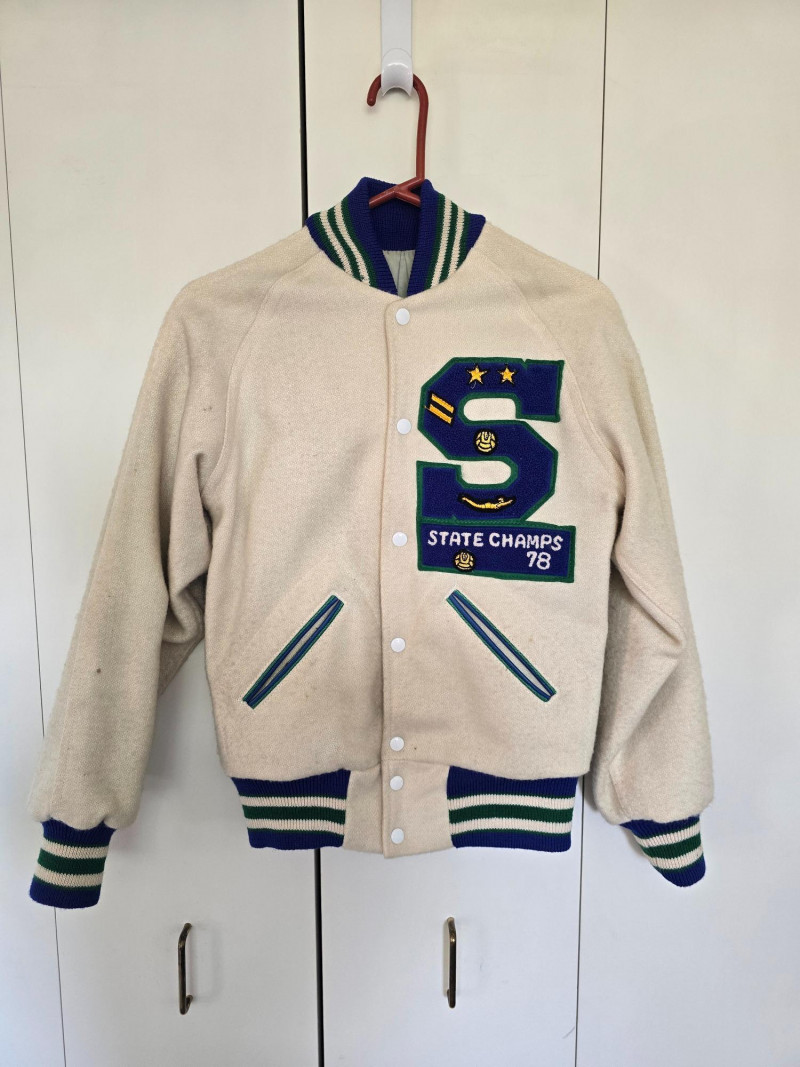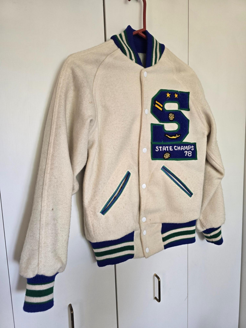 Vintage local Shoreline Shorewood high school wool sports jacket made by Lasley Knitting Co. 1978 State Champs! Cool local piece. Has some wear on the bottom backside of the inner lining.