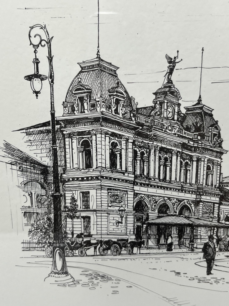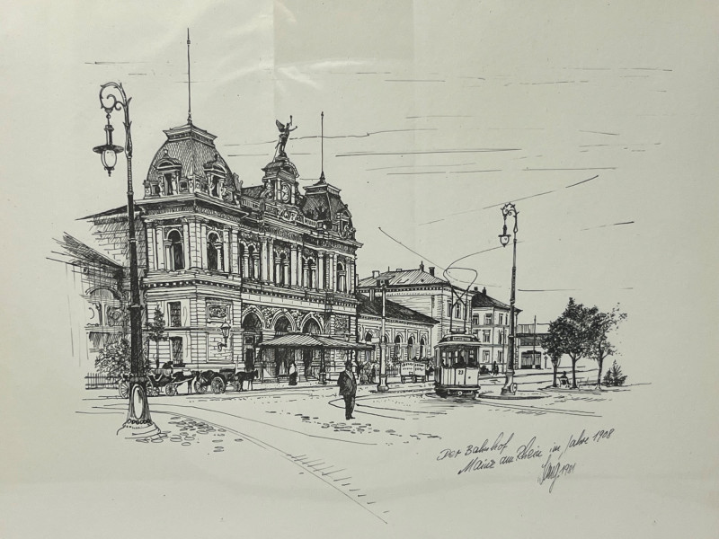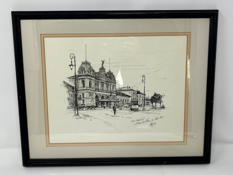 Lot # 16 - Original Ink Sketch of Mainz Train Station- Signed & Dated