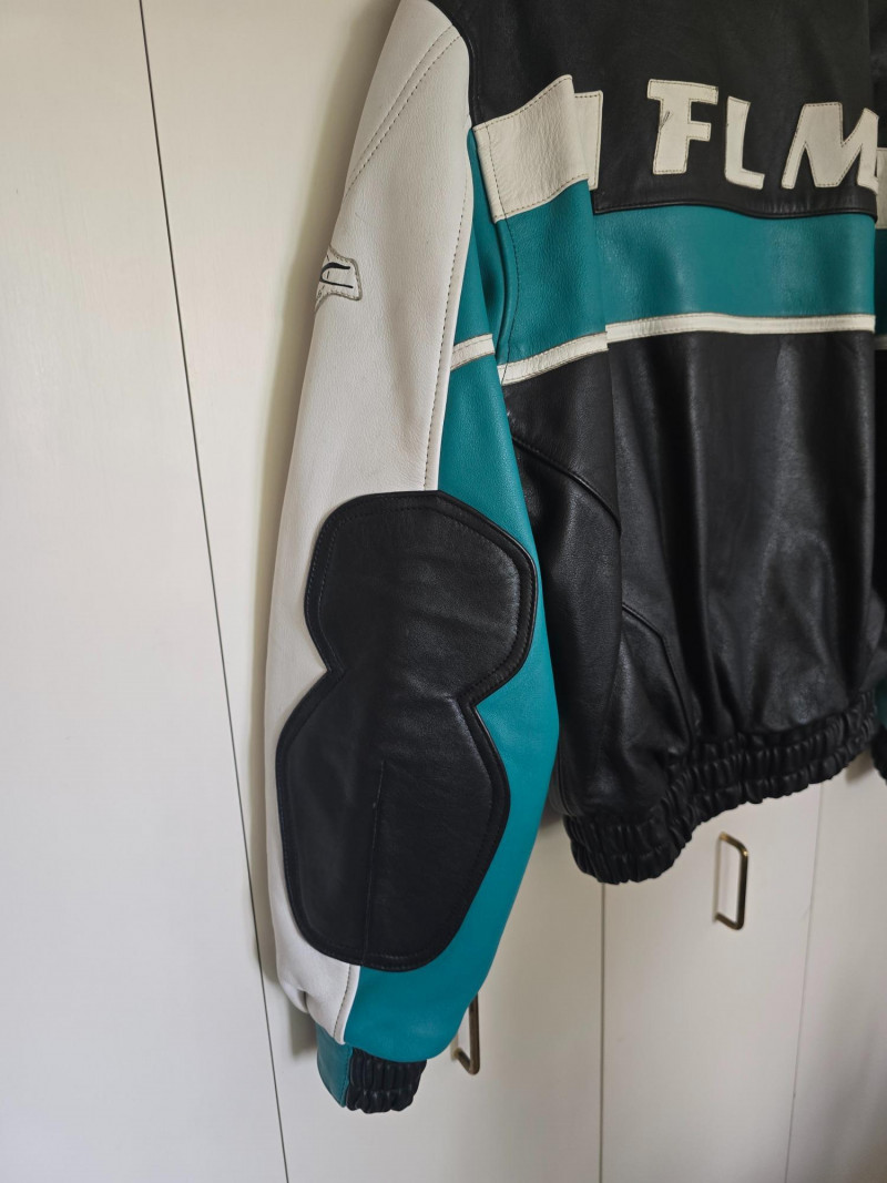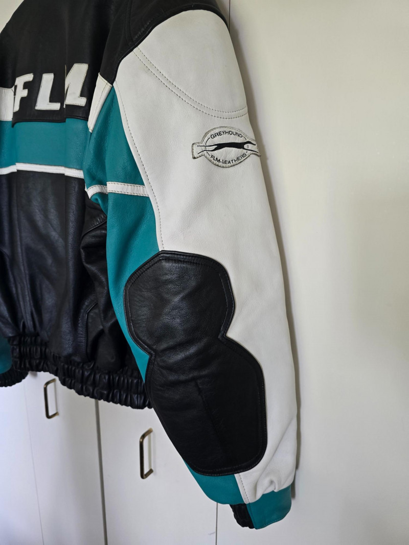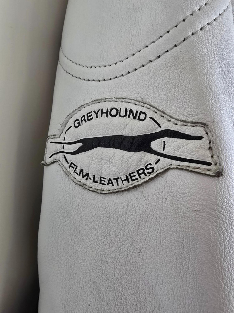 Greyhound FLM racing jacket. Size Large. Jacket is in fantastic shape Ventilated elbows. Elastic waist.