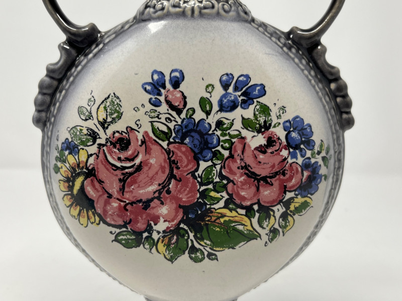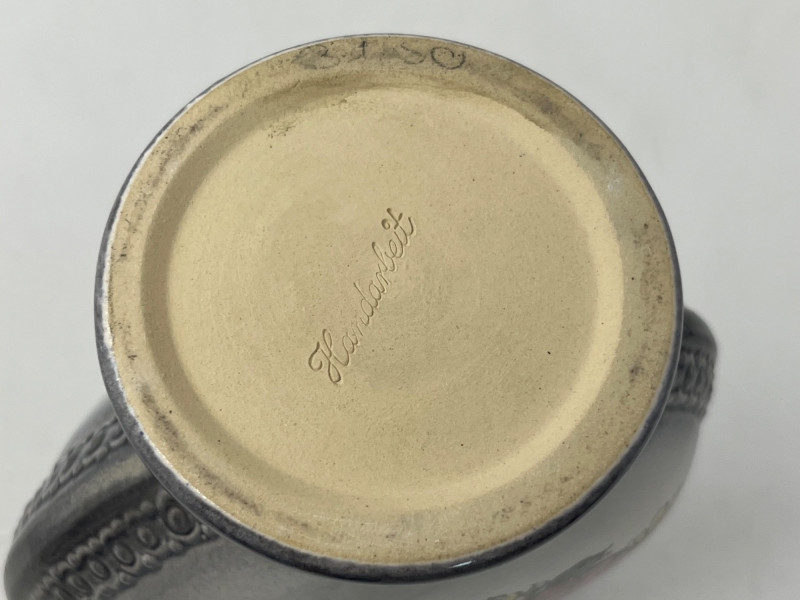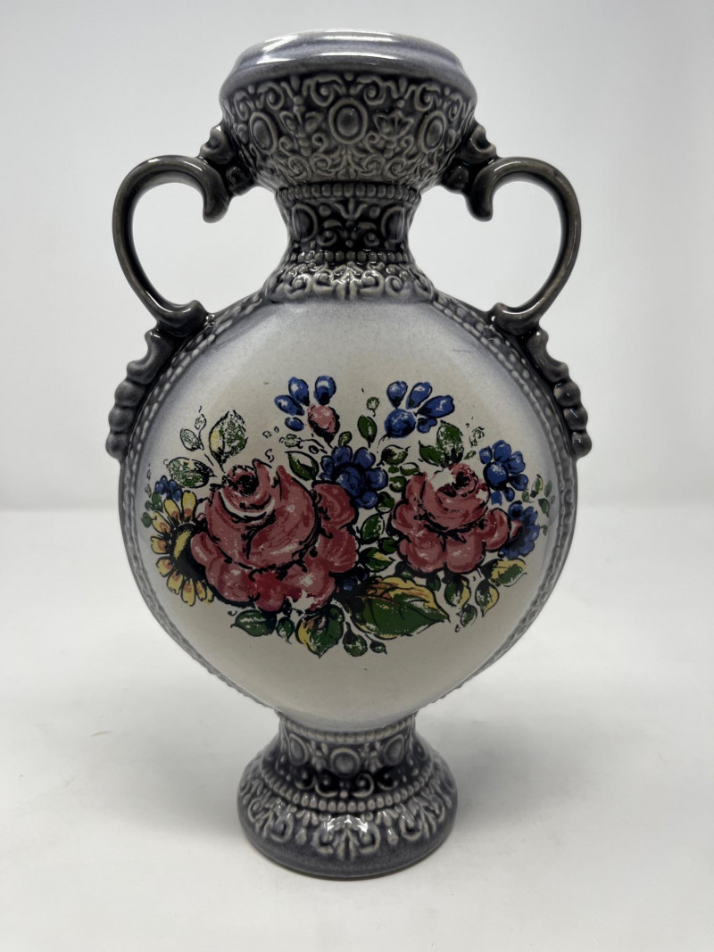 Vintage, hand-painted vase by Marzi & Remy. Some wear on the flowers, but case is in excellent condition with no cracks or breaks. Marked on the bottom “Handarbeit” meaning handmade in German. Marzi & Remy was a German stoneware and pottery company founded in 1879 by Anton Marzi and Simon Peter Remy. They were known for their beer steins, pitchers, mugs, and other decorative items