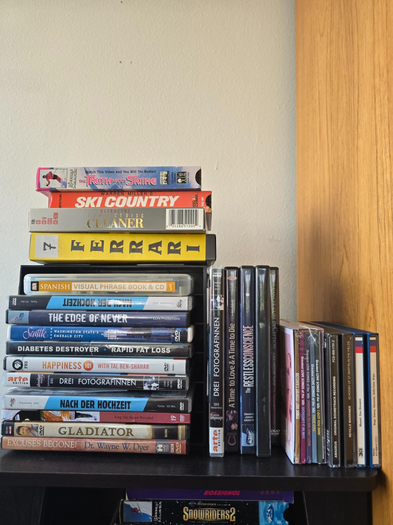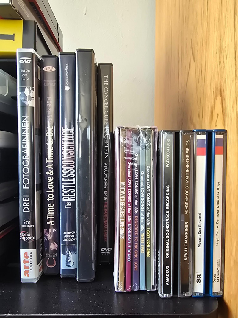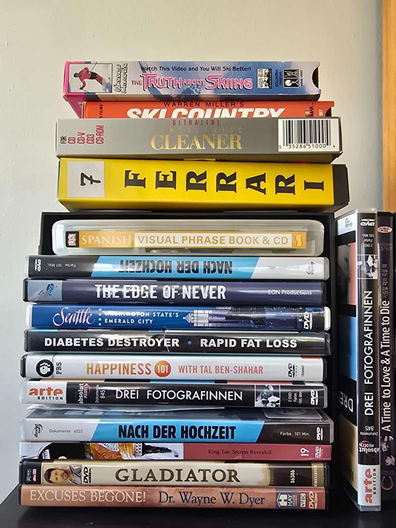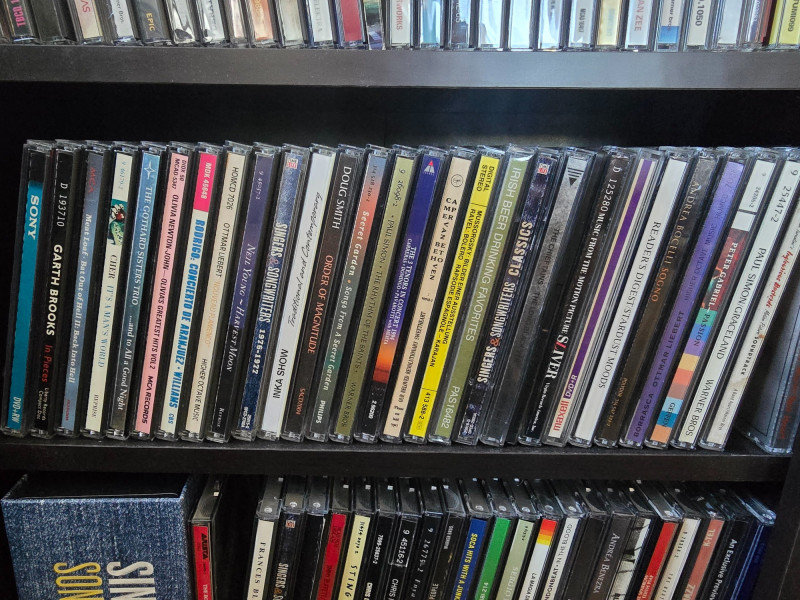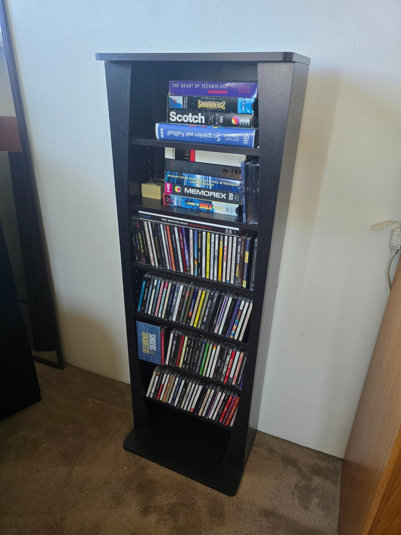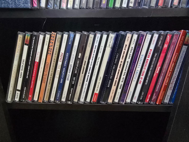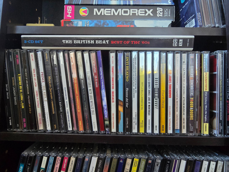 Cd collection including artists like Michael Jackson, Prince Shakiria, Elton John Garth Brooks, Peter Gabriel Paul Simon, Billy Holiday, John Lennon and many more along with various cassettes. various dvds and vhs cassettes.